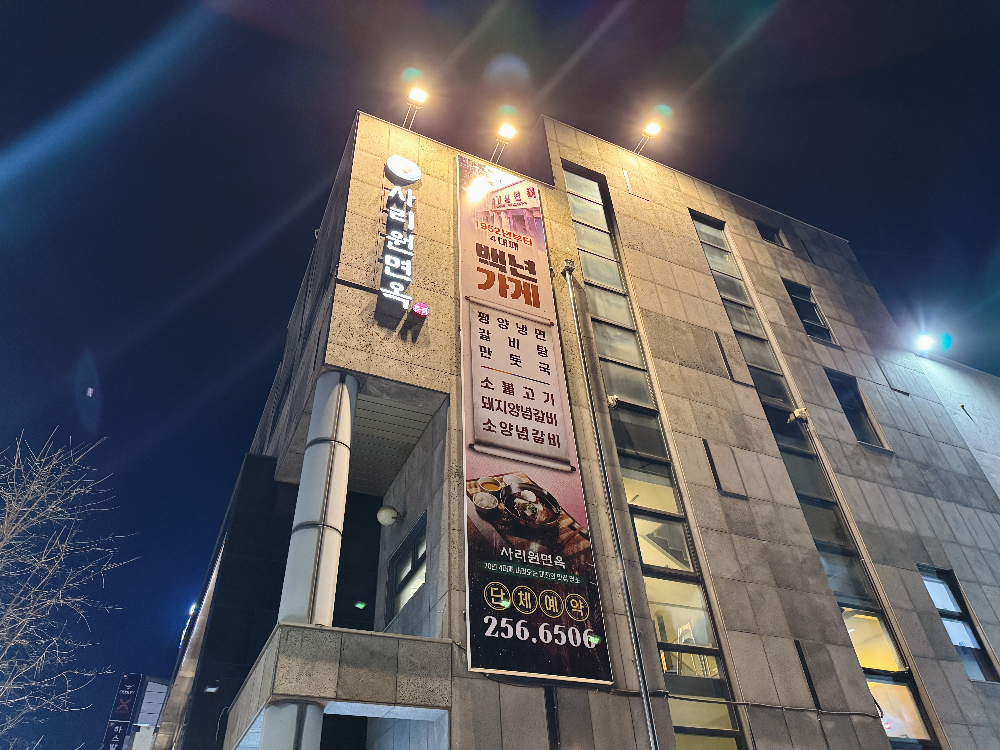 성심당에서 빵과 케이크를 잔뜩 산 뒤 두루치기 맛집인 진로집으로 갔는데.. 저녁시간이라 그런지 대기줄이 꽤 길었습니다. 배가 너무 고파 줄을 서서 기다릴 수가 없는 상태였던 짝꿍과 저는 근처에 있던 다른 식당으로 갔는데요. 70년 4대째 내려오는 대전의 맛집이라는 문구에 이끌려 사리원면옥으로 갔답니다. 1952년부터 4대째 가업을 이어오고 있다는 사리원면옥으로 함께 고고씽해요~