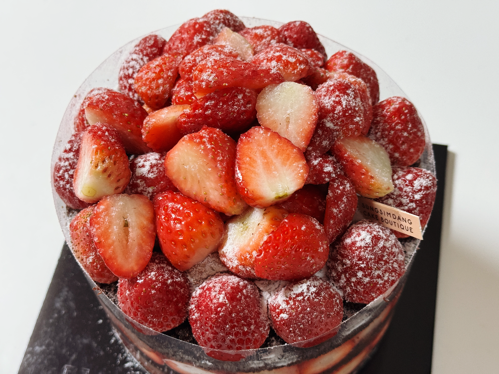 성심당하면 딱~ 떠오르는 성심당의 시그니처이자 인기 케이크, 딸기시루입니다. 식을 줄 모르는 인기만큼 맛도 최고일까요? 품절된 딸기시루 2.3kg 대신 2단으로 된 딸기시루막내를 사 왔는데요. 싱싱한 딸기가 엄청 많이 들어있습니다. 딸기 때문에 무게도 묵직합니다.