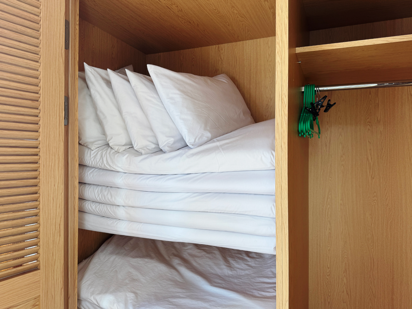휴양림은 강릉에서 한번 가보고 무의도 휴양림이 두 번째인데요. 강릉에 있는 휴양림은 지어진 지 오래되어서 그런지 깨끗했지만(?) 뭔가 살짝 찜찜한 느낌이었는데.. 무의도 휴양림은 이불이 너무 깨끗해서 깜짝 놀랐답니다. 흰색 침구라니~ 이불이 살짝 무거웠지만 베개도 폭신하고 방바닥도 뜨끈해서 편하게 잘 잤습니다.