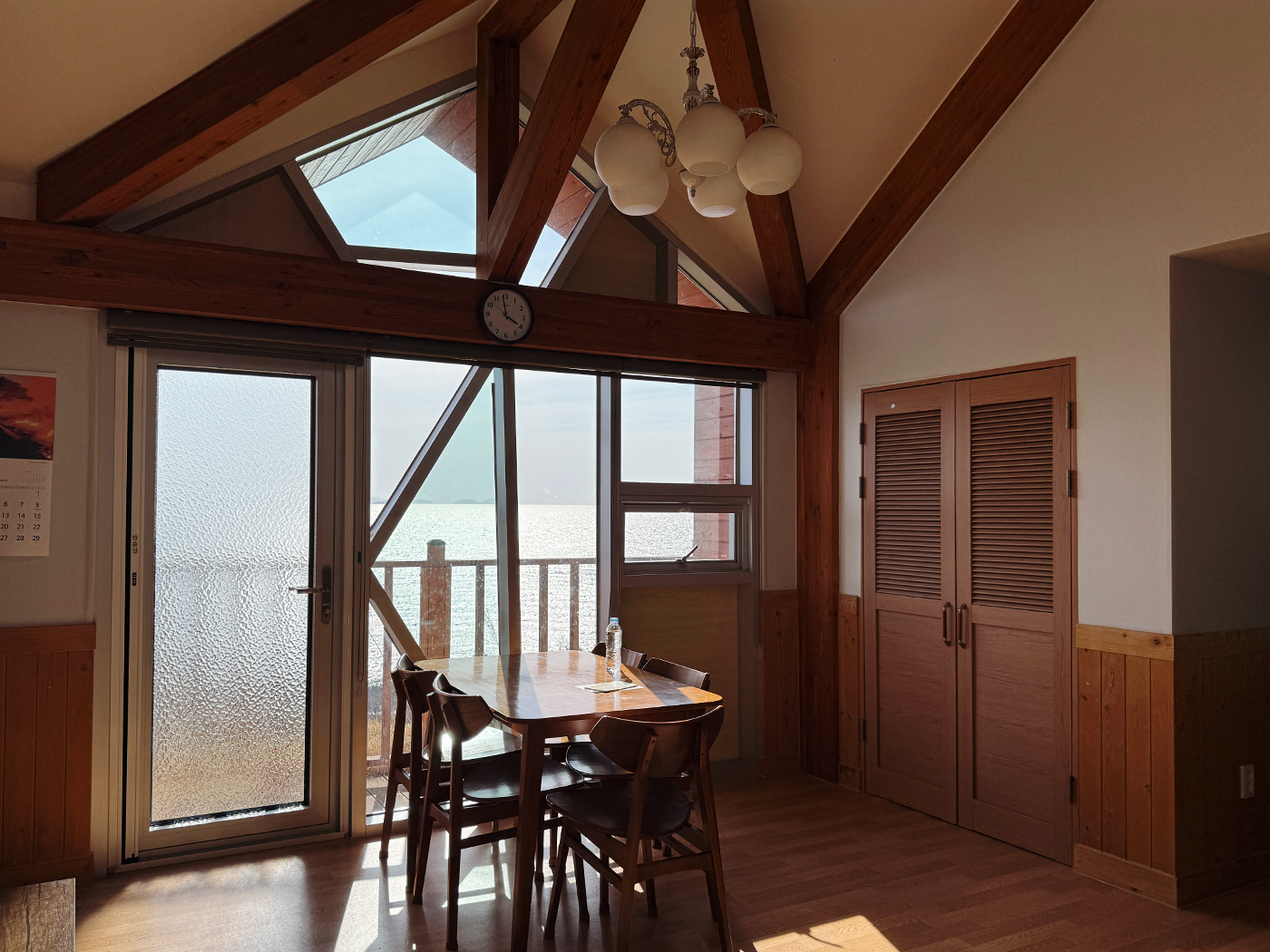 방문자센터에서 예약확인을 하고 카드키를 받으면 되는데요. 방문자센터 로비가 오션뷰 카페처럼 너어~무 멋지답니다. 방문자센터에는 편의점이나 매점은 따로 없고 공용전자레인지와 음료수 자판기가 있습니다.