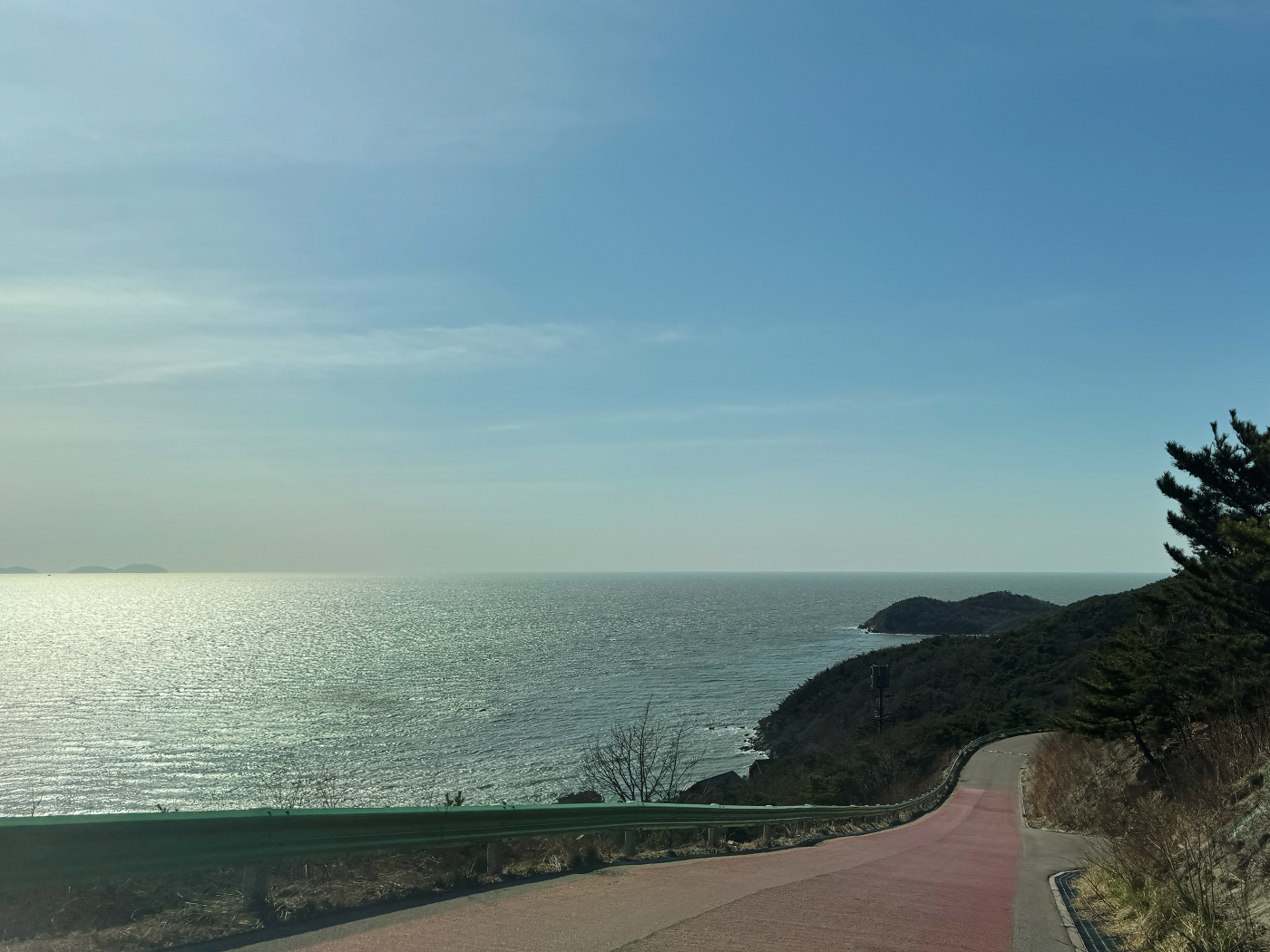 길이 산으로 이어져 있어 살짝 당황했는데요. 산을 넘어가면 짜~잔~~ 넓게 펼쳐진 바다가 보인답니다. 언덕을 내려가면서 멋진 풍경에 우와~를 연발했는데요. 사진으로 담지 못해 아쉬울 정도랍니다.