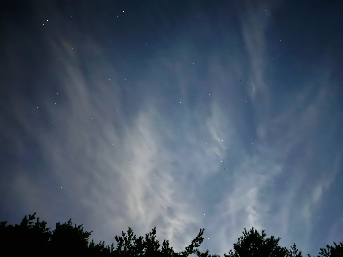 휴양림에서 본 밤하늘입니다. 주변에 불빛이 없어 별이 너무 잘 보였답니다. 하늘이 밝게 나왔는데 실제로는 깜깜한 하늘에 별만 보입니다~ 북두칠성을 찍었는데 보이시나요?