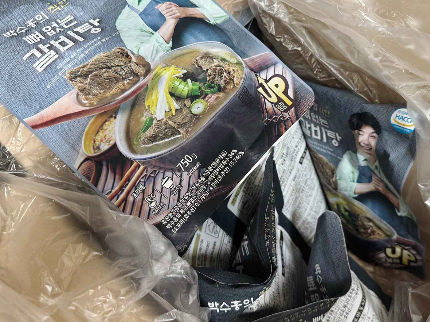 홈쇼핑 매니아인 엄마는 종종 홈쇼핑에서 먹을 걸 주문해서 보내주시는데요. 얼마 전 그냥 끓이기만 하면 된다며 바쁠 때나 음식 만들기 귀찮을 때 먹으라며 갈비탕을 주문해서 저희 집으로 보내주셨답니다. 저번에는 백종원 아저씨가 만든 소고기 곰탕을 보내주셨었는데 다 먹을 걸 어찌 알고.. 이번에는 박수홍 착한 뼈 없는 갈비탕을 보내 주셨어요~ (박수홍 아저씨 얼굴.. 지못미..)