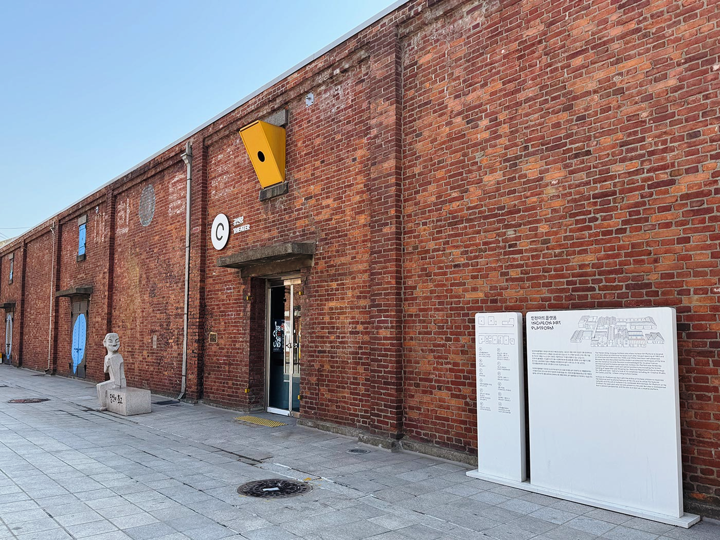 빨간 벽돌이 멋있는 이 건물은 예전에 대한통운 창고로 쓰였다고 하는데요. 아직도 벽에 대한통운 글씨가 남아있습니다. 지금은 인천아트플랫폼 공연장으로 리모델링되었답니다.