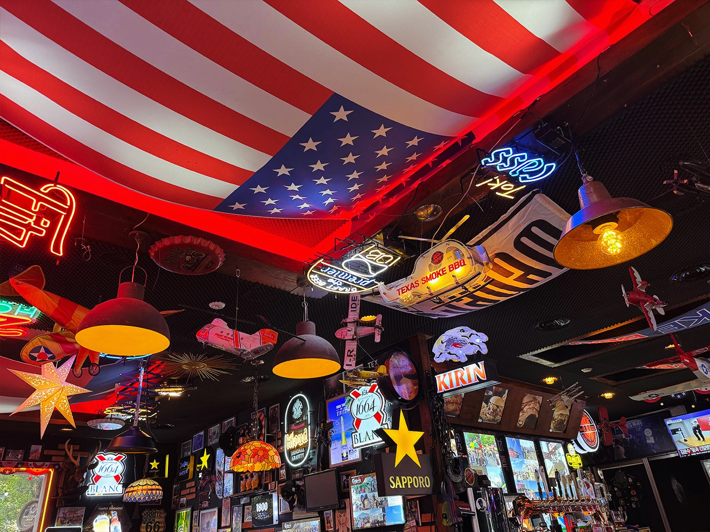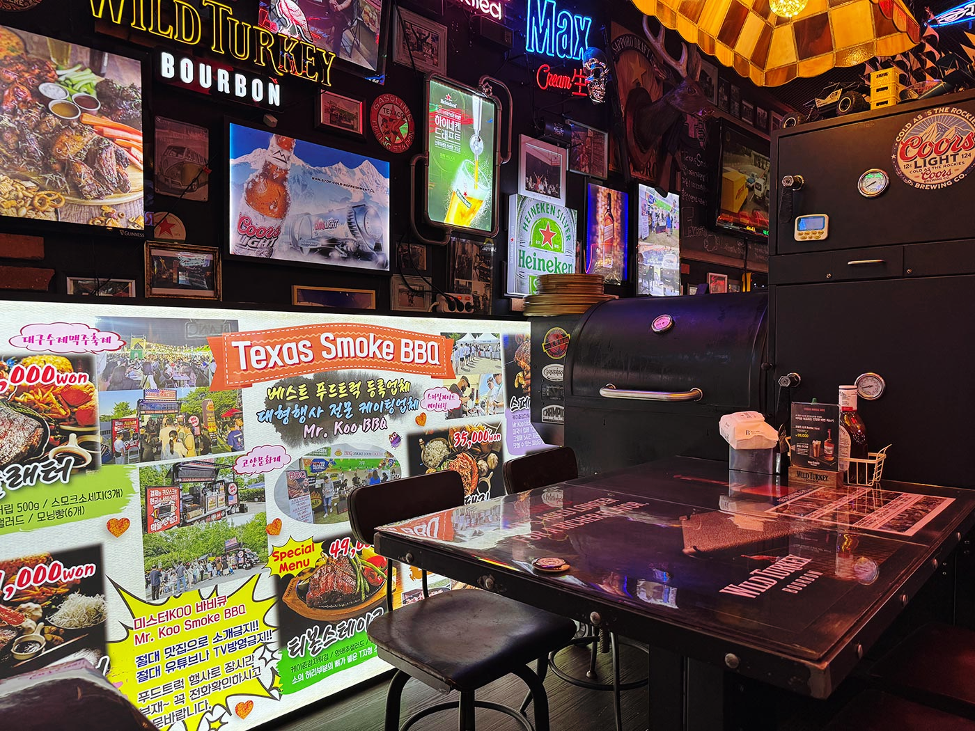 밖에서 봤을 땐 여기가 바비큐 맛집이 맞나.. 살짝 의아했었는데 가게 안으로 들어서면 완전 다른 곳 같은데요. 텍사스 바비큐와 너무 잘 어울리는 힙한 인테리어에 들어오기 전 생겼던 의구심이 사르르 녹는답니다. 소품들이 많은데 뭔가.. 잘 어울립니다 :-)