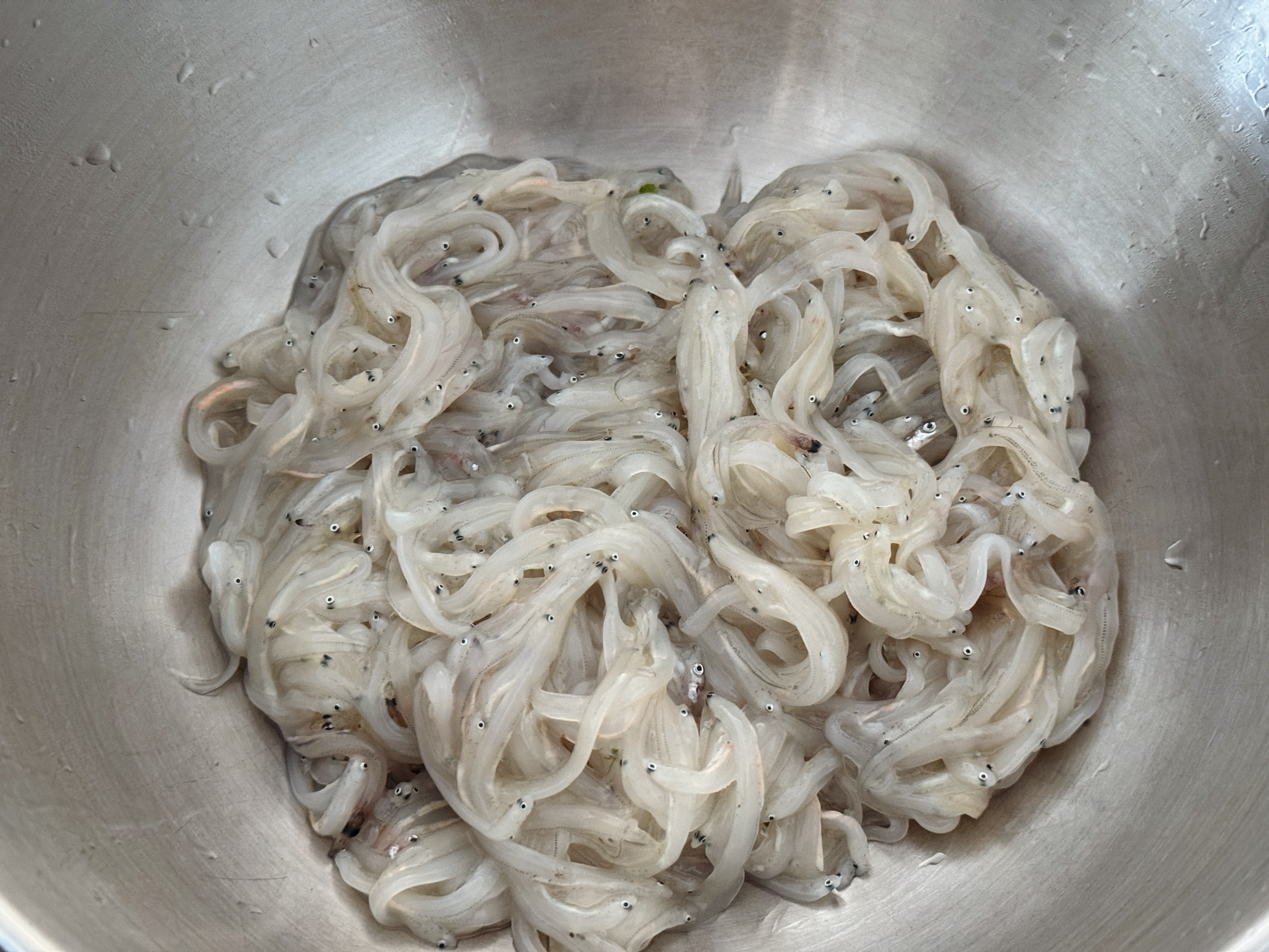 실치를 아시나요? 베도라치 치어를 실치라고 하는데요. 실처럼 가느다랗고 작고 긴 생선입니다. 뱅어포를 이 실치로 만든답니다. 서산과 당진에서 봄에 많이 잡히기 때문에 매년 4월 말쯤 실치축제도 열리는데요. 고향이 서산이신 아버지께서 시골집에 다녀오시면서 실치를 사다 주셨어요~ 갓 잡은 실치는 온몸이 투명한데 죽으면 하얗게 변한답니다. 집에서 가져올 때만 해도 반투명했었는데 그새 하얗게 됐네요.