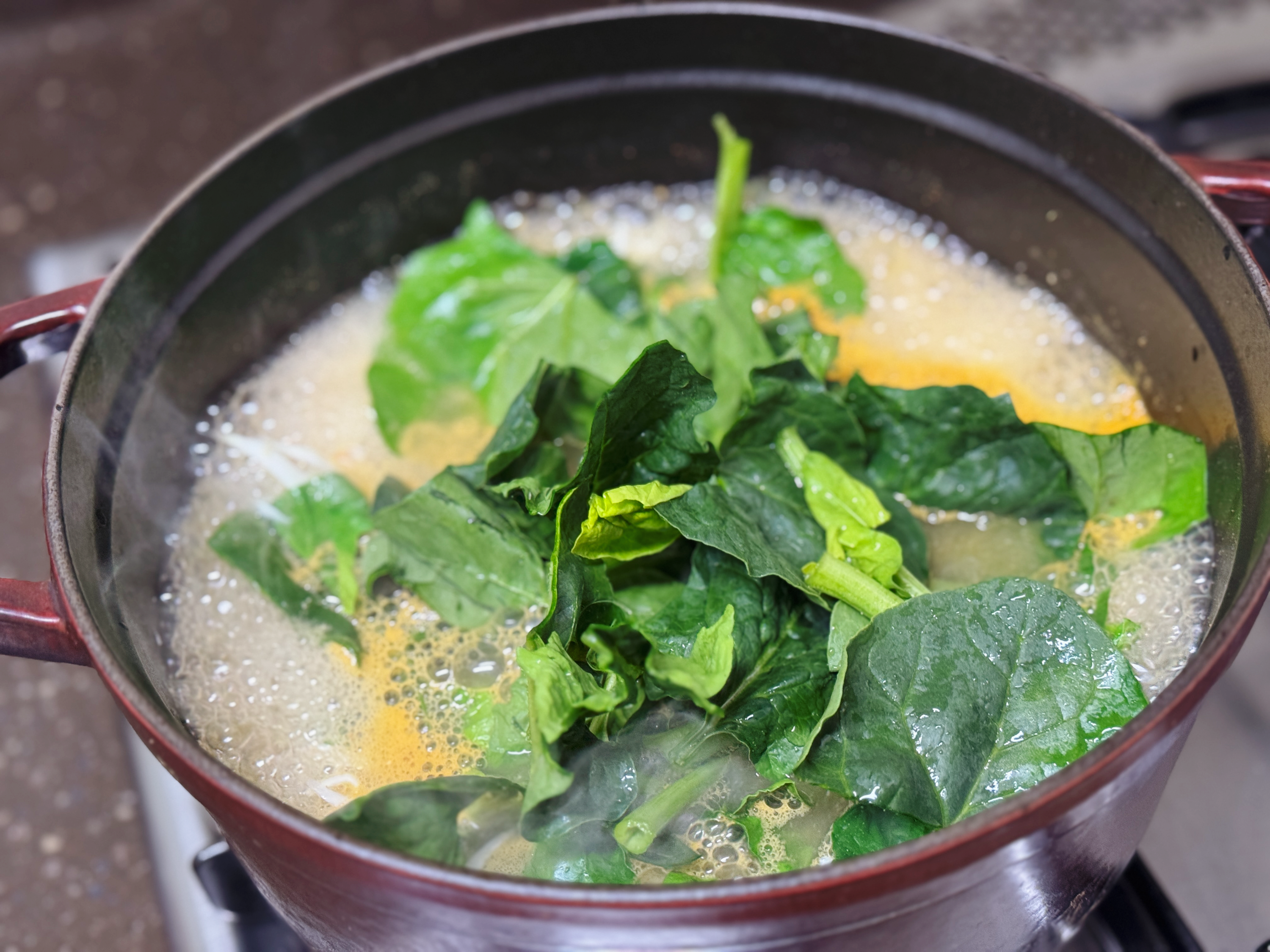<시금치 넣고 끓이기>