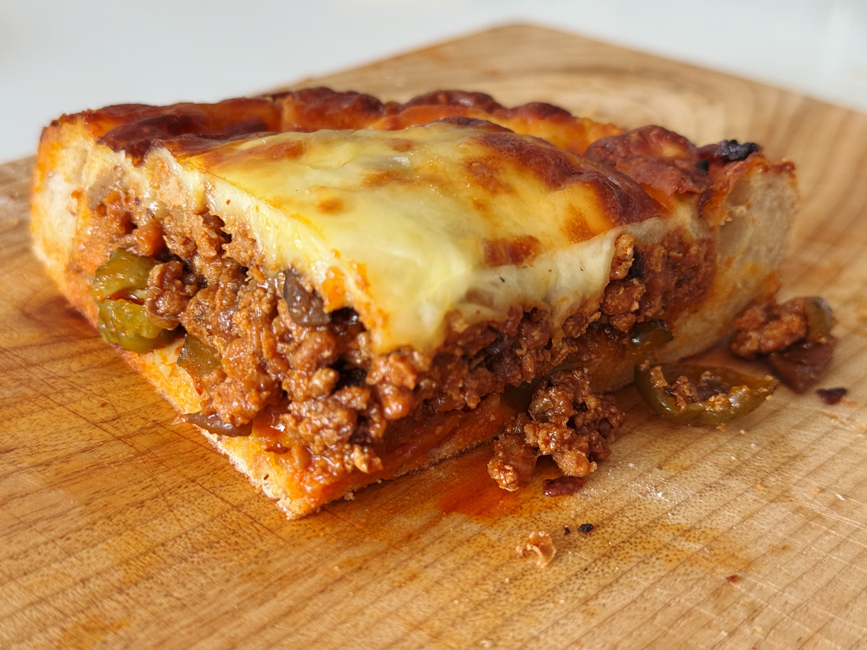 컥! 보이시나요? 이것은 피자가.. 아닙니다. 미트파이 아닌가요? 고기가 진짜~ 많이 들었는 미트파이가 분명합니다. 가격이 16500원이었는데요. 웬만한 피자보다 훨씬 나았답니다. 고추장에 돼지고기를 볶은 것 같은 맛인데 한식의 그 맛은 아니고 독특하답니다. 이름처럼 매콤한데 피클도 들어있고 도우도 빠삭 쫄깃한 것이 맛있습니다. 1/4 조각 먹고 저녁까지 배가 불렀답니다.