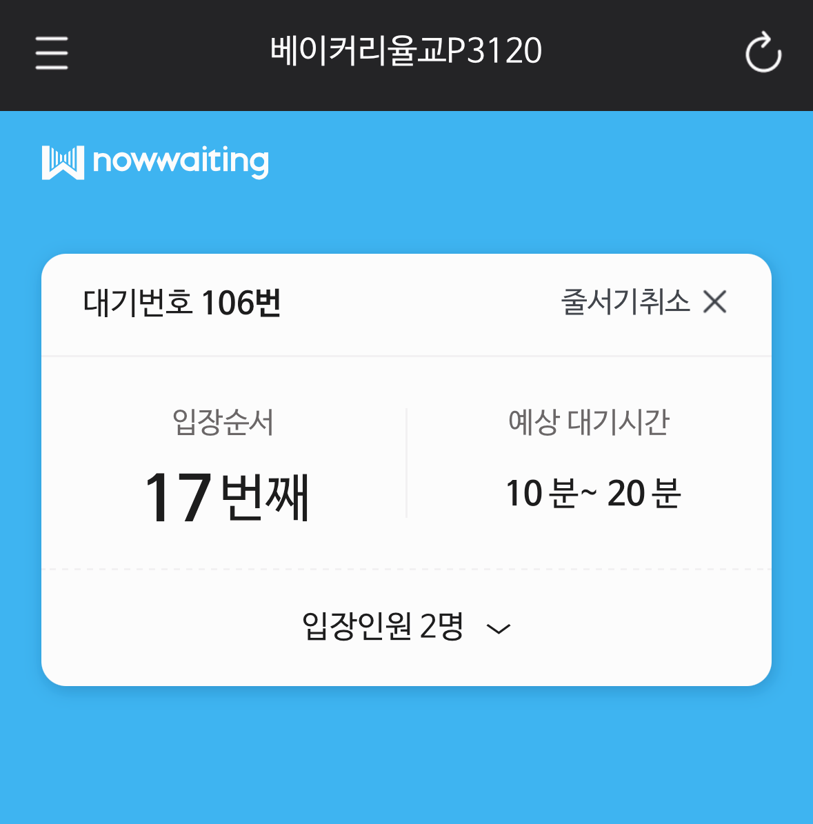 핸드폰번호를 입력하고 대기 등록을 하면 카톡으로 알림이 온답니다. 입장순서가 17번째였는데 예약한 지 얼마 안 되어서 사람들이 우르르 들어가고 대기 순서가 7번째로 바뀌었는데요. 예상 대기시간은 22분이었는데 10분 정도 기다리고 매장 안으로 들어갔답니다.