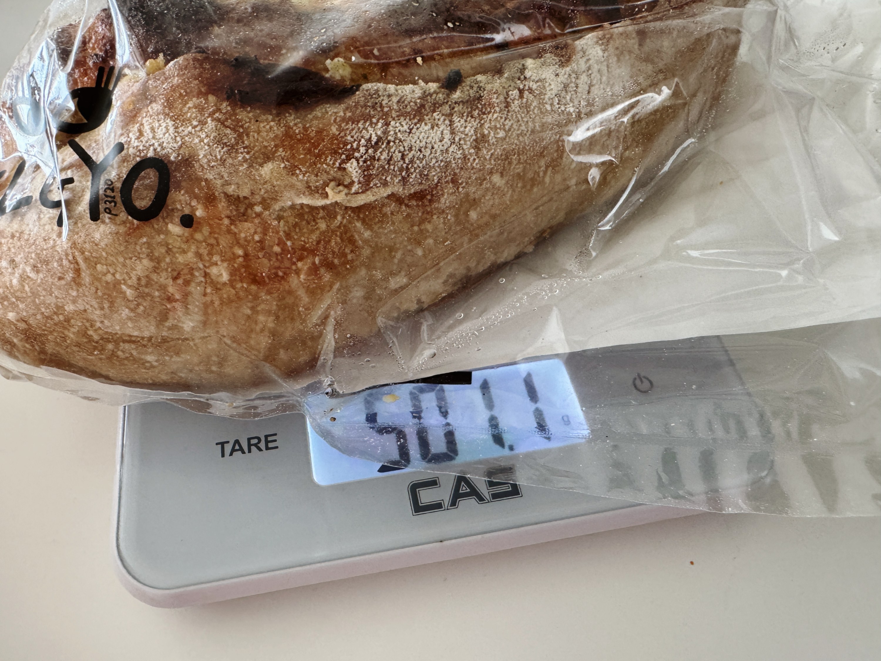 짝꿍이 빵을 쟁반에 담아서 이렇게 무거운 줄 몰랐는데 크기에 비해 너무 묵직해서 자르기 전에 무게를 재봤답니다. 무슨 빵이 한 덩이에 500g이나 하는 거죠? 700g이 넘는 것도 있었답니다. 3개만 합쳐도 1.7kg인데 오늘 산 빵을 다 합치면 도대체 몇 kg인 거죠? @..@