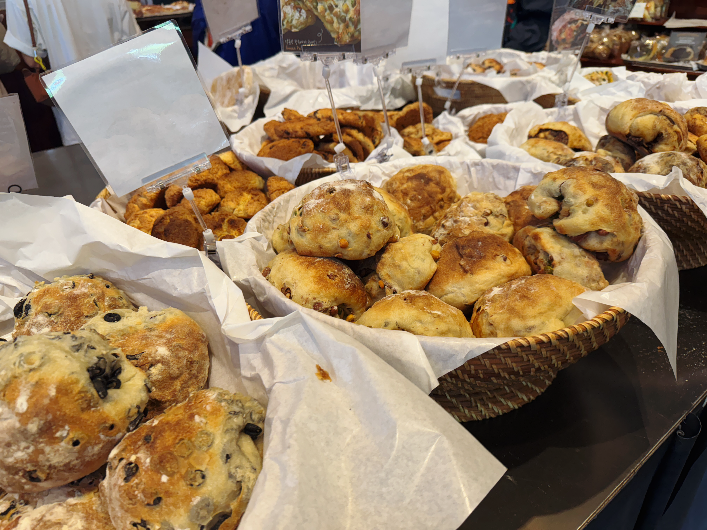 빵 종류가 다양했는데요. 치아바타와 사워도우 같은 발효빵에 재료를 듬뿍듬뿍 넣은 것이 특징입니다. 바게트도 있고 모닝빵, 피자도 있답니다.