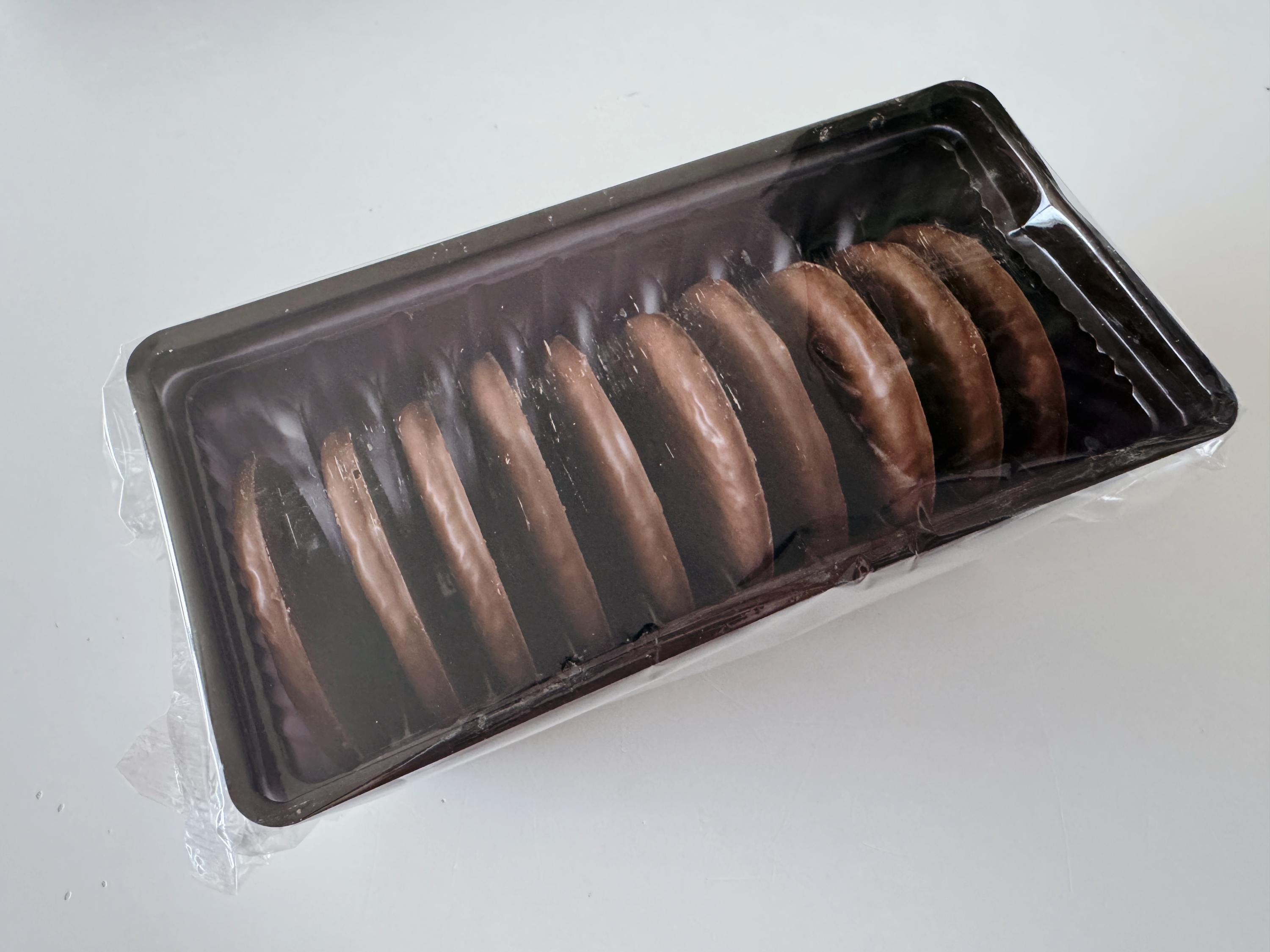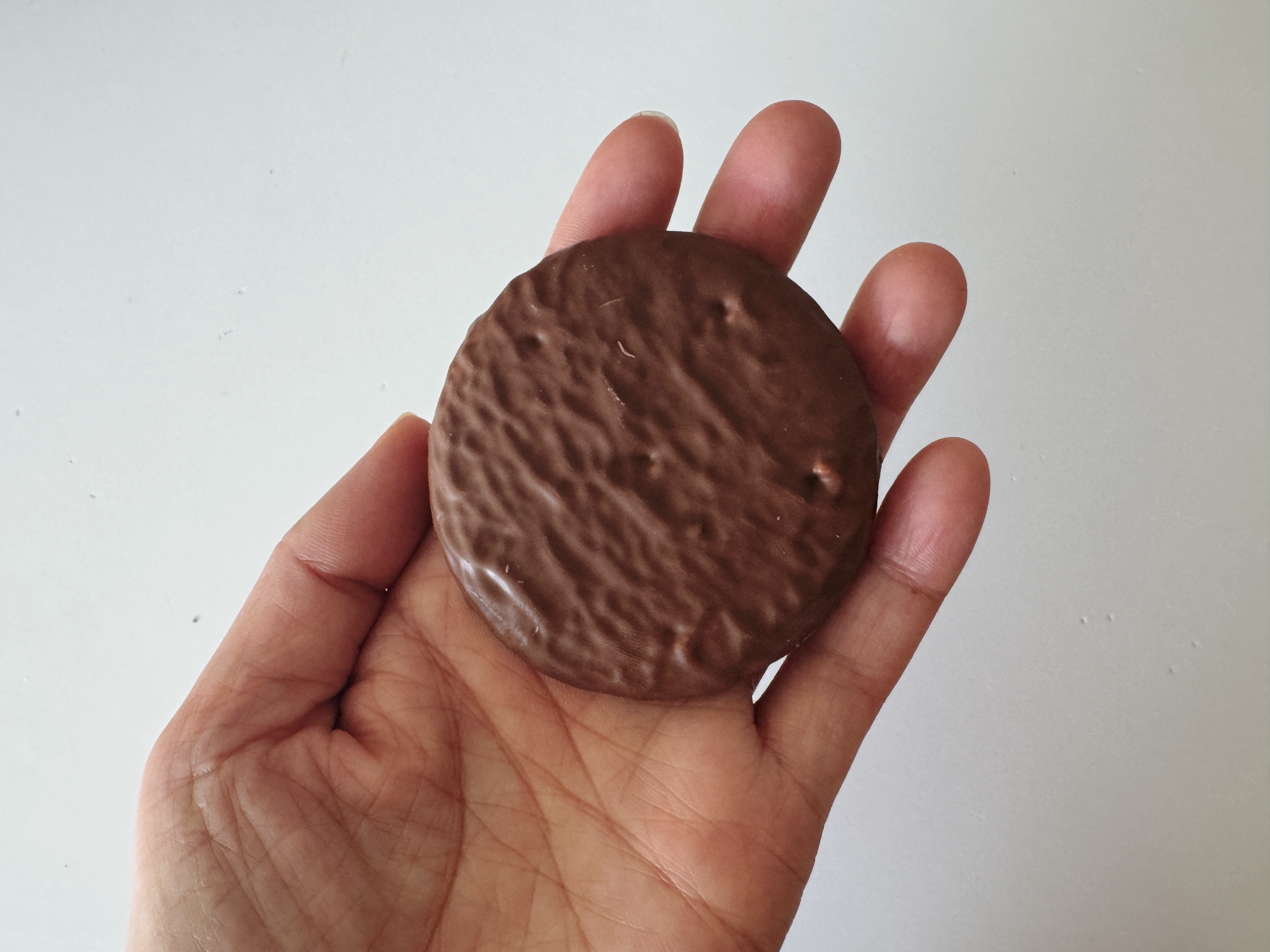 너무 크지도 않고 너무 작지도 않은 적당한 사이즈여서 달달한 것이 당길 때 한 두 개 정도 먹으면 딱입니다. 그냥 초콜릿쿠키가 아니라 버터 초콜릿쿠키여서 고소한 풍미가 초코와 어우러져 정말 맛있는데요. 버터 쿠키여서 촉촉하지 않을까 했는데 비스킷처럼 바삭하답니다. 겉에 코팅된 초콜릿은 부드럽고 너무 많이 달지 않아 좋습니다. 그런데.. 날이 더워 손으로 집으니 초콜릿이 손에 묻어 난리도 아니었답니다. 낱개 포장이 아니어도 상관없다고 생각했었는데 손이 초콜릿 범벅이 되고 보니 포장이.. 조금 아쉽습니다.