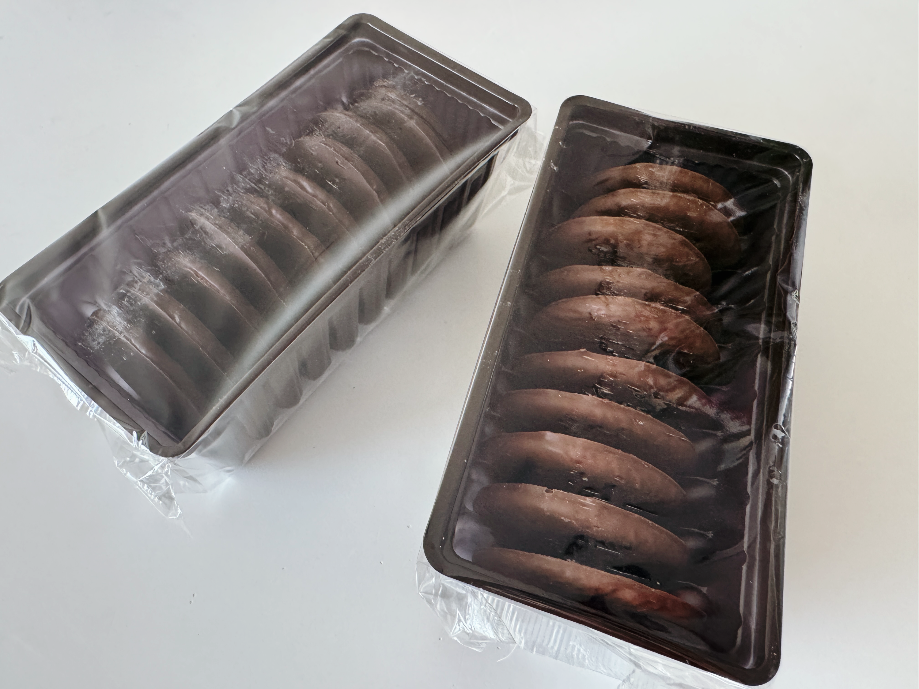 너무 크지도 않고 너무 작지도 않은 적당한 사이즈여서 달달한 것이 당길 때 한 두 개 정도 먹으면 딱입니다. 그냥 초콜릿쿠키가 아니라 버터 초콜릿쿠키여서 고소한 풍미가 초코와 어우러져 정말 맛있는데요. 버터 쿠키여서 촉촉하지 않을까 했는데 비스킷처럼 바삭하답니다. 겉에 코팅된 초콜릿은 부드럽고 너무 많이 달지 않아 좋습니다. 그런데.. 날이 더워 손으로 집으니 초콜릿이 손에 묻어 난리도 아니었답니다. 낱개 포장이 아니어도 상관없다고 생각했었는데 손이 초콜릿 범벅이 되고 보니 포장이.. 조금 아쉽습니다.