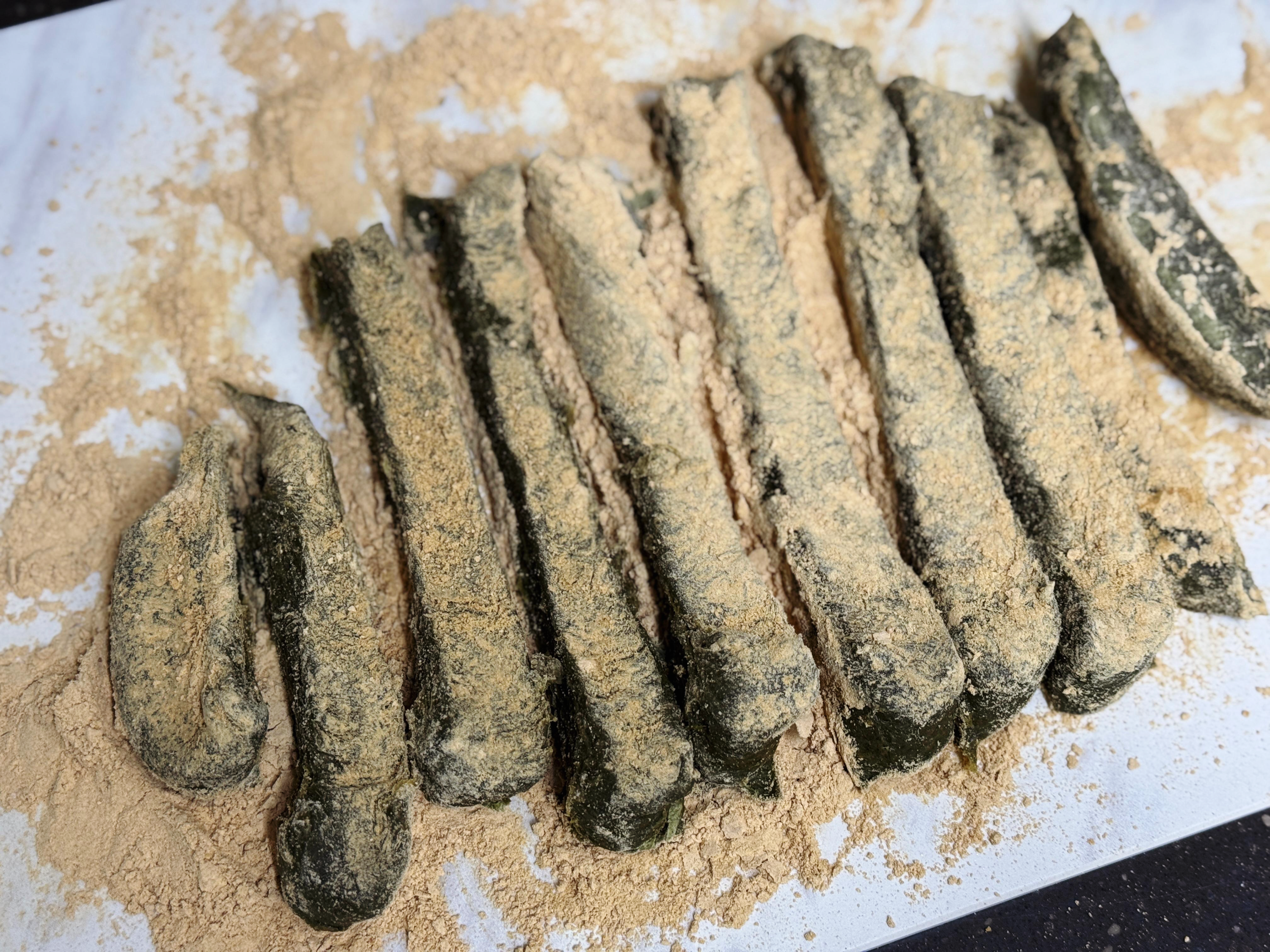 4. 자르고 콩고물 묻히기