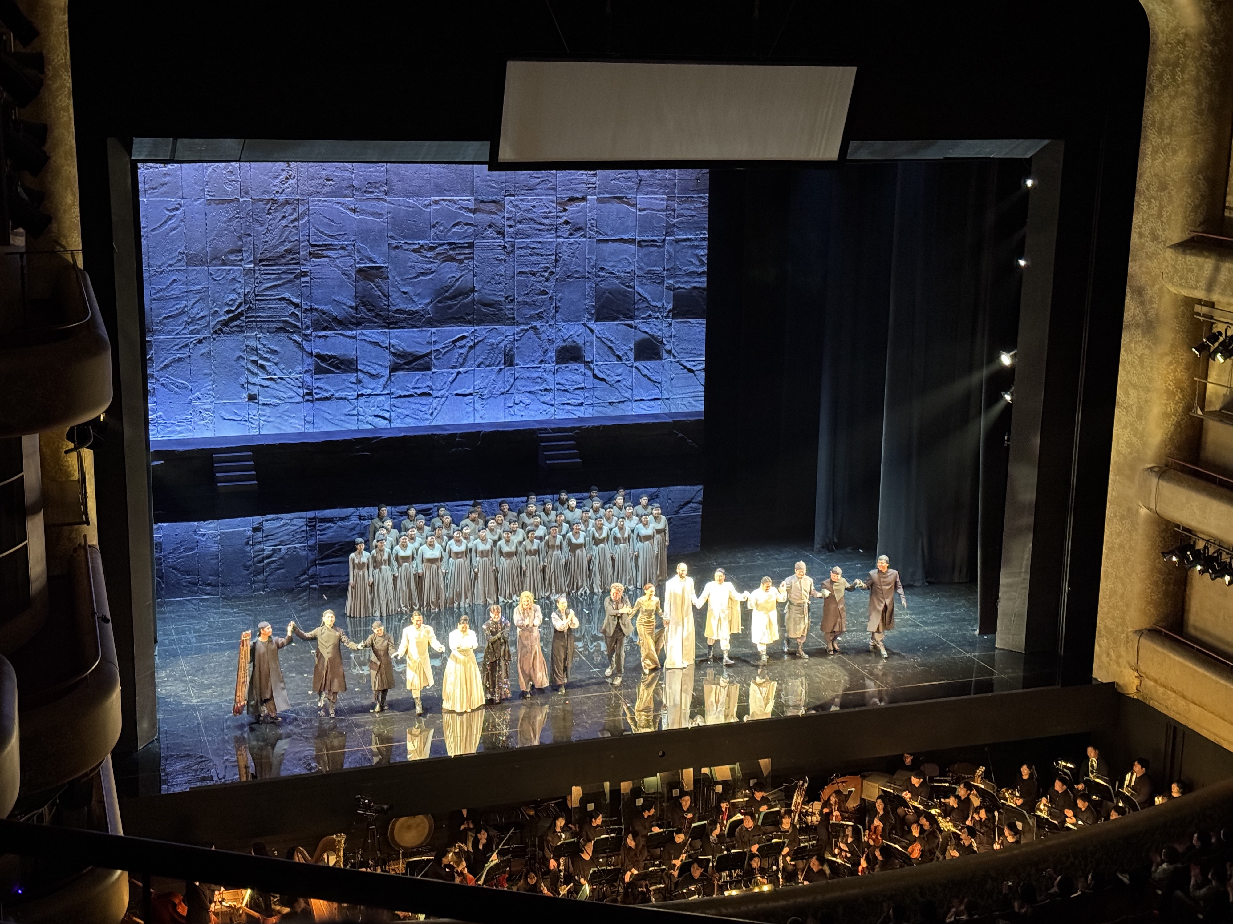 제가 앉은 자리는 3층 B석 A구역 2열 13번 좌석이었는데요. 3층이었지만 생각보다 무대가 잘 보였답니다. 오케스트라 연주도 생생하게 잘 들리고 음악을 잘 모르는 제가 느끼기에도 곡들이 너무나 좋았습니다. 그런데.. 3층이어서 무대와 멀어서 그랬는지 성악가분들의 소리가 잘 들리지 않았습니다. 오케스트라 음향에 목소리가 묻힌 것인지.. 목소리가 잘 안 들려서 초반에는 집중이 잘 안 됐는데요. 사실 가사가 영어였기 때문에 잘 들렸어도 이해하기 어려워 화면을 봤겠지만.. 웅웅 거리는 듯한 소리는 많이 아쉬웠습니다. 공주역이었던 성악가분은 성량이 남다르신 건지 그나마 목소리가 시원하게 잘 들렸답니다 :-)  그리고 한 가지 더~ 오페라의 킬링 파트가 없었다는 점이 아쉬웠는데요. 오페라를 잘 모르는 저도 그 오페라를 대표하는 그런 곡이 있다는 걸 아는데요. 밤의 여왕 아리아 같은 파트가 물의 정령에서 없었습니다. 있었는데 제가 몰랐던 건지도..