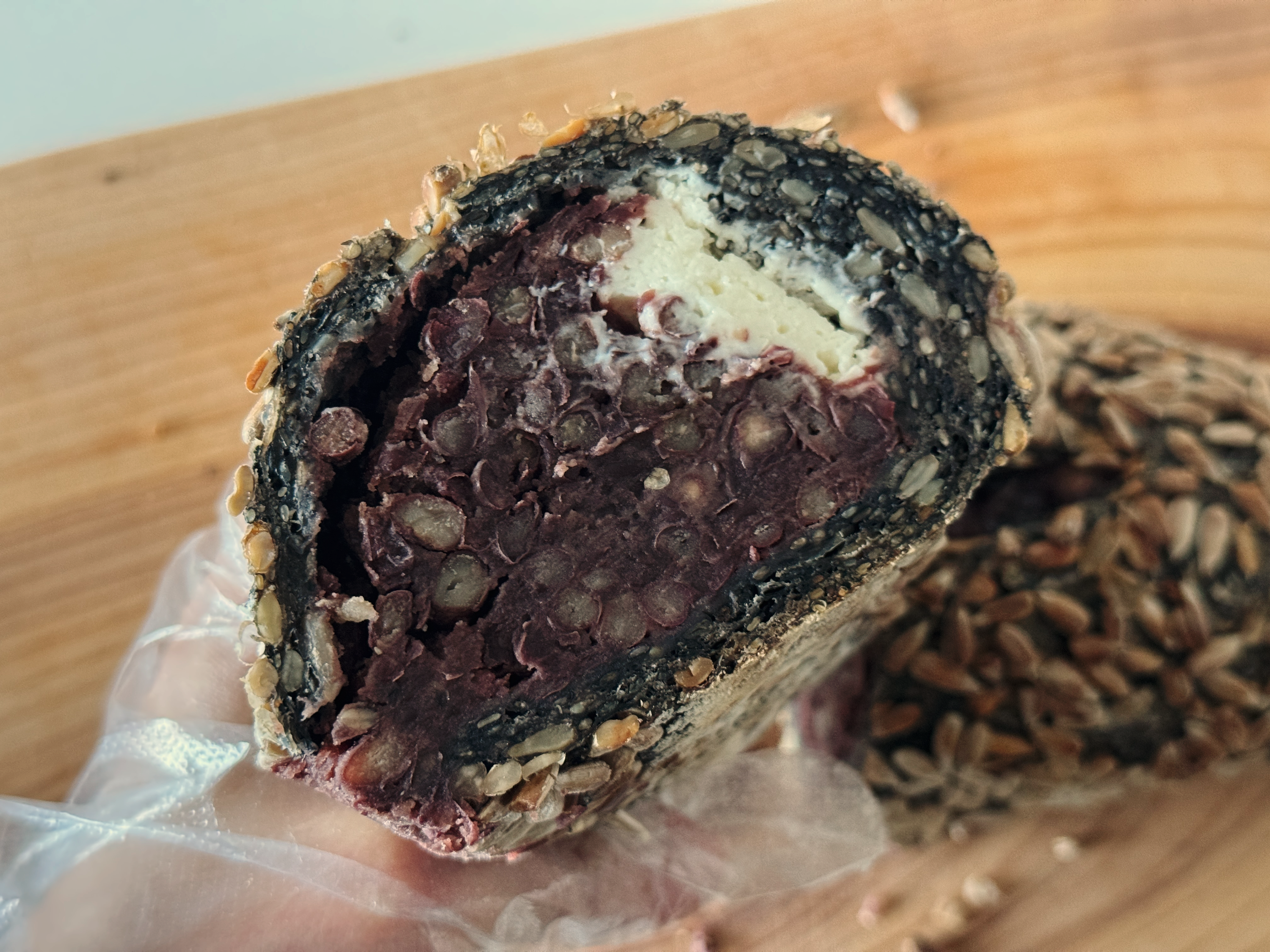잡곡팥사워도우 속에는 팥과 크림치즈가 가득 들어있습니다. 팥만 들어있으면 퍽퍽했을 텐데 달콤하고 부드러운 크림치즈가 같이 들어있어 맛있답니다. 팥이 많이 들어있는데도 달지 않고 느끼하지 않아 좋은데요. 한 가지 불편한 건 먹을 때 겉에 붙어있는 씨앗들이 후드득 떨어진다는 점..