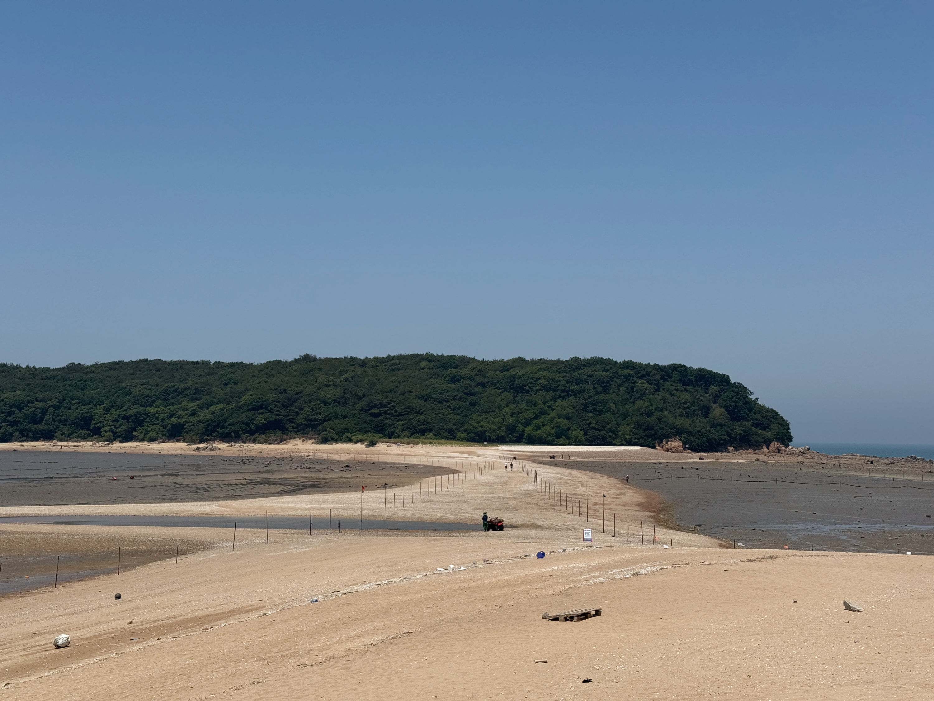 2시쯤 바지락을 캐던 해변에 물이 차올라 갯벌이 서서히 잠기기 시작해 갯벌에 있는 사람은 다 나오라고 방송이 나왔는데요. 3시쯤에는 무의도로 들어가는 갈라졌던 바닷길이 완전히 잠겼답니다.