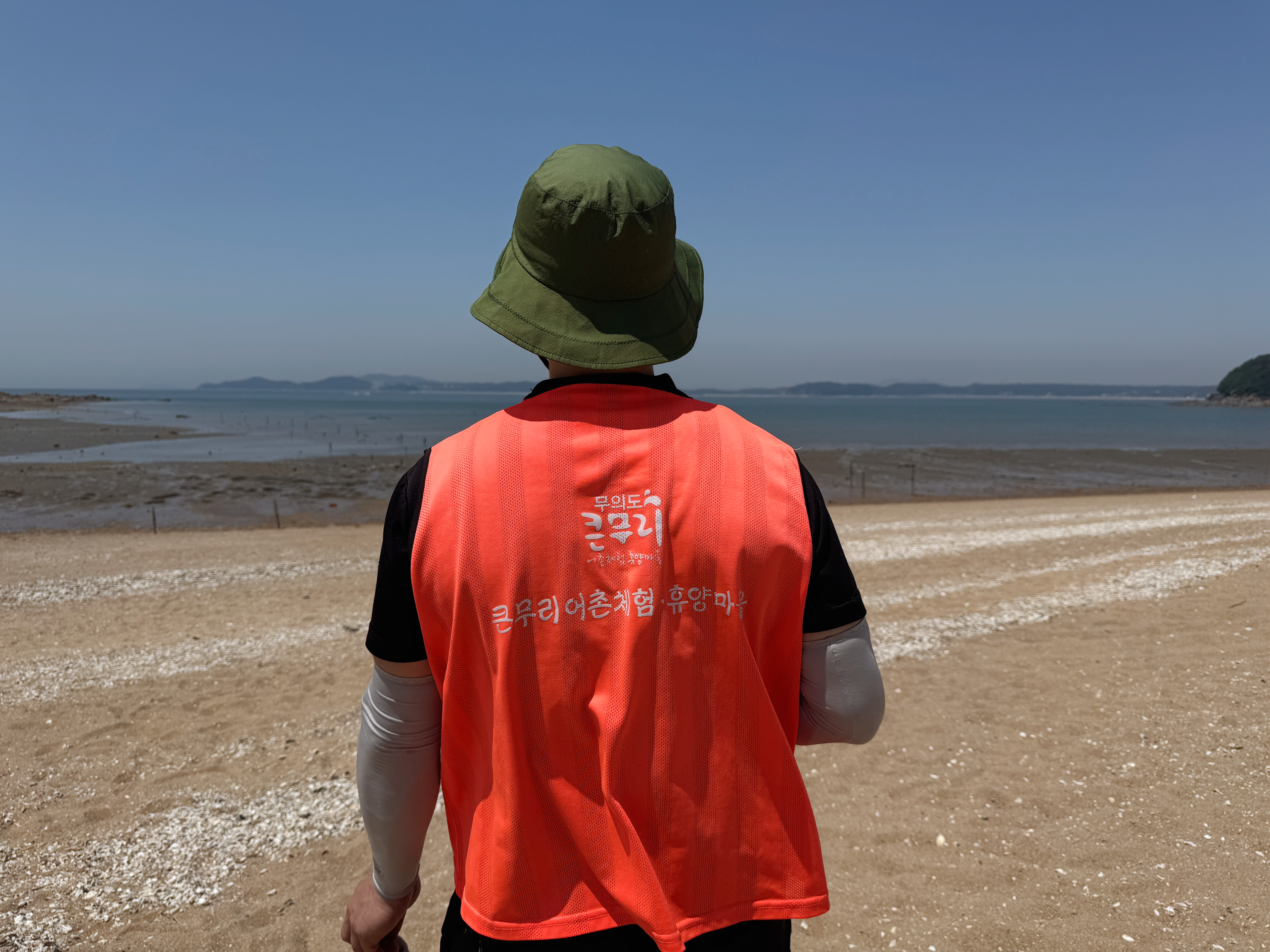 갈라진 바닷길을 건너서 실미도를 한 바퀴 돌고 갯벌체험도 하려고 했었는데.. 너무 늦게 도착하는 바람에 실미도 들어갔다 오기와 갯벌체험 두 가지 중에 하나를 선택해야 했는데요. 실미도는 다음에 다시 와서 여유 있게 돌아보기로 하고 바지락 캐기 갯벌체험을 했답니다. 갯벌체험 매표소는 실미도로 들어가는 바닷길과 가까운 곳에 있습니다. 갯벌체험 매표소에서 체험비를 결제하면 플라스틱 바구니와 호미, 빨간 조끼를 준답니다. 빨간 조끼를 입고 호미로 열심히 바지락을 캐서 바구니에 담으면 됩니다 :-) 조개 캐기는 실미도로 들어가는 길 갯벌의 줄 안쪽에서 하면 됩니다. 물이 들어올 시간이 가까워져서 그런지 멀리 가지 말고 해변 가까운 곳에서 캐라고 하시면서 멀리 안 나가도 바지락이 많이 잡힌다고 알려주셨어요.