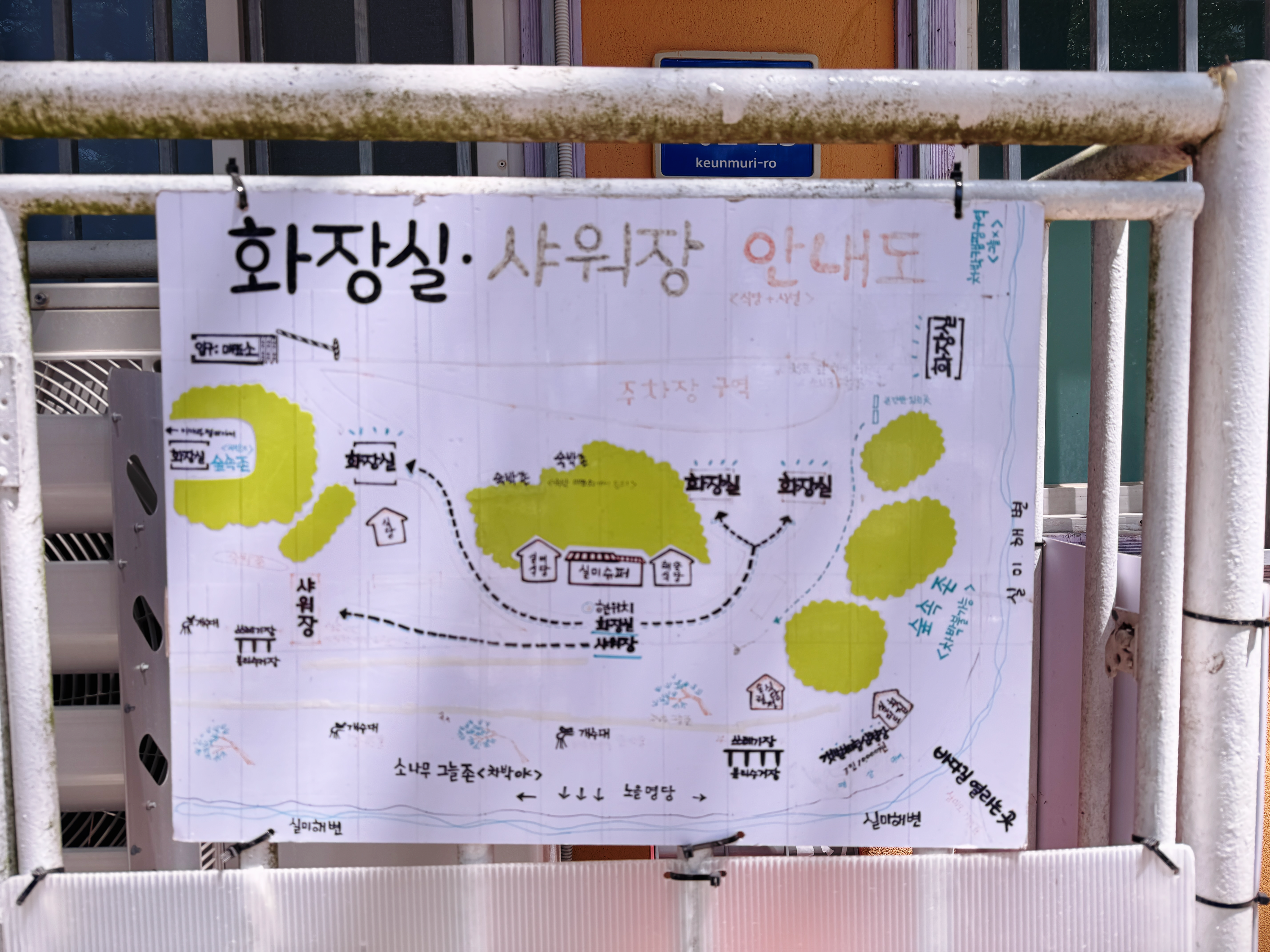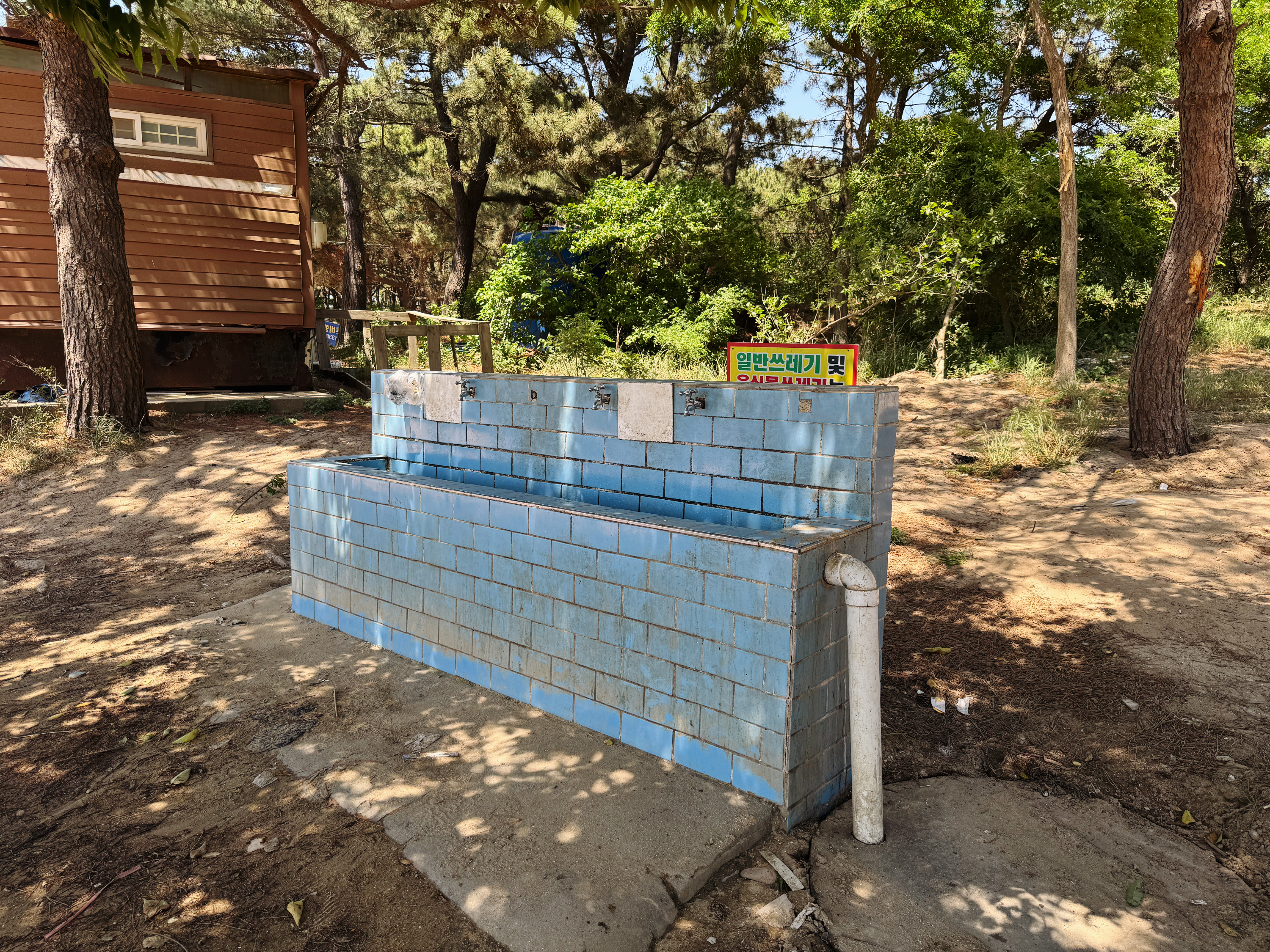 슈퍼 앞 화장실, 샤워장 안내도입니다. 화장실, 샤워장 안내도라고 되어있는데 실미도 유원지 전체 안내도처럼 자세하게 시설물들이 표시되어 있답니다. 샤워장과 화장실, 쓰레기장과 개수대가 곳곳에 있고 식당 2곳과 작은 슈퍼가 하나 있습니다. 슈퍼에는 봉지라면, 컵라면, 아이스크림, 과자, 음료, 주류, 부탄가스 등 웬만한 건 다 있습니다. 짝꿍과 제가 자리 잡은 곳은 슈퍼에서 조금 멀리 떨어져 있어 왔다 갔다 하기 불편했는데요. 편의시설을 자주 이용할 계획이라면 슈퍼나 샤워장 근처 구역을 미리 확인하고 자리 잡는 걸 추천드립니다. 기본 편의시설들은 잘 마련되어 있었지만 전체적으로 상태가 그리 좋은 편은 아니었는데요. 샤워장이나 화장실 이용은 조금 불편할 수도 있습니다. 그래서 그런지 간이 화장실 텐트가 곳곳에 많이 보였답니다. 이 점은 장박이나 숙박을 하기에는 많이 아쉬운 부분인 것 같습니다.