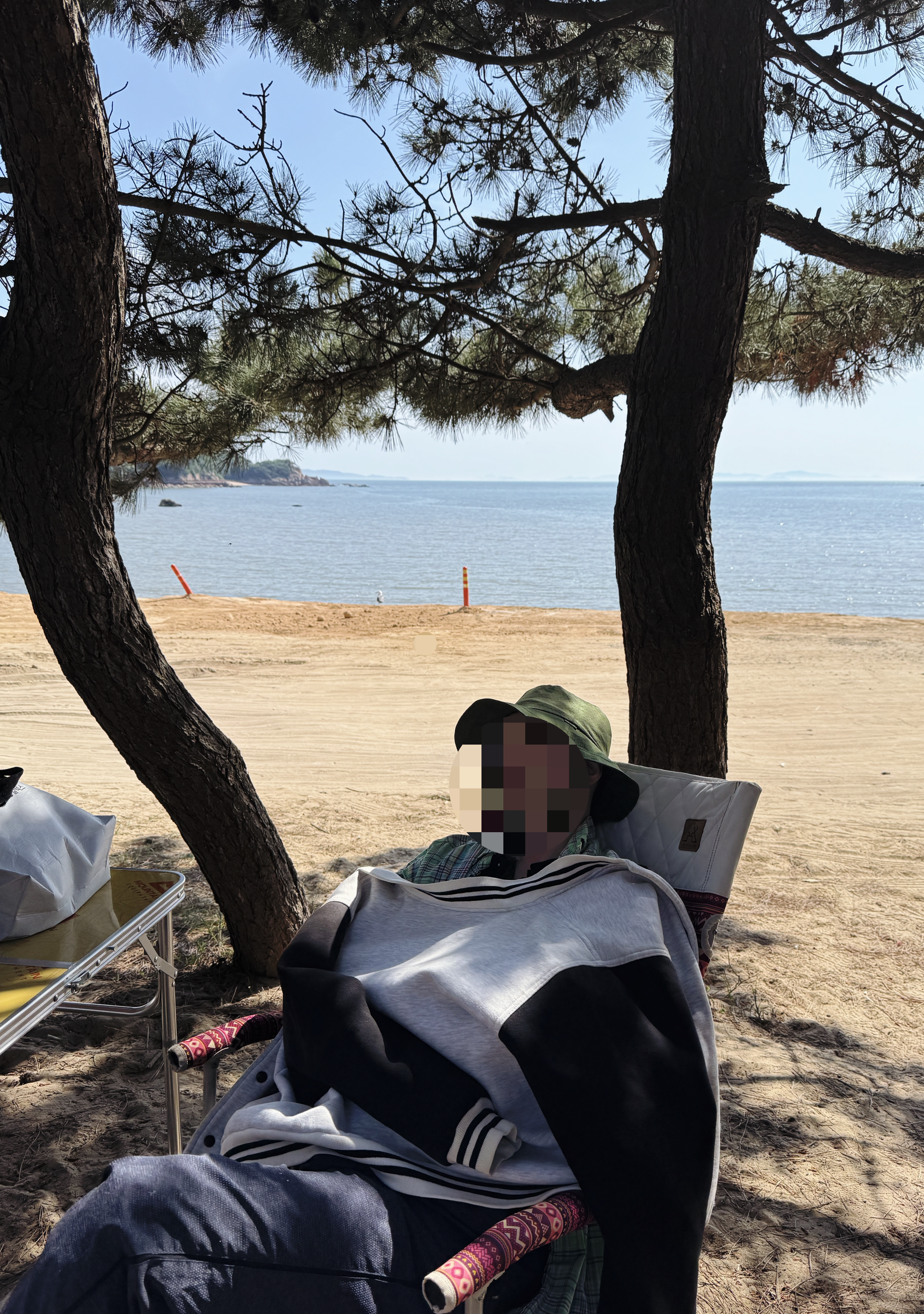 한적하고 소나무 그늘도 있어 김밥과 컵라면을 먹고 나른해져 스르륵 잠든 짝꿍입니다. 이쪽 구역은  에어컨을 켜 놓은 것 같이 차가운 바람이 불어 시원했는데요. 여유롭게 시간을 보내기엔 좋았는데.. 나중엔 너무 바람이 많이 불어 추웠답니다. 그날그날 바람이 부는 방향에 따라 다르겠지만 바람이 불면 많이 서늘한 곳이니 개인 취향에 따라 자리를 선정하시면 좋을 것 같습니다~