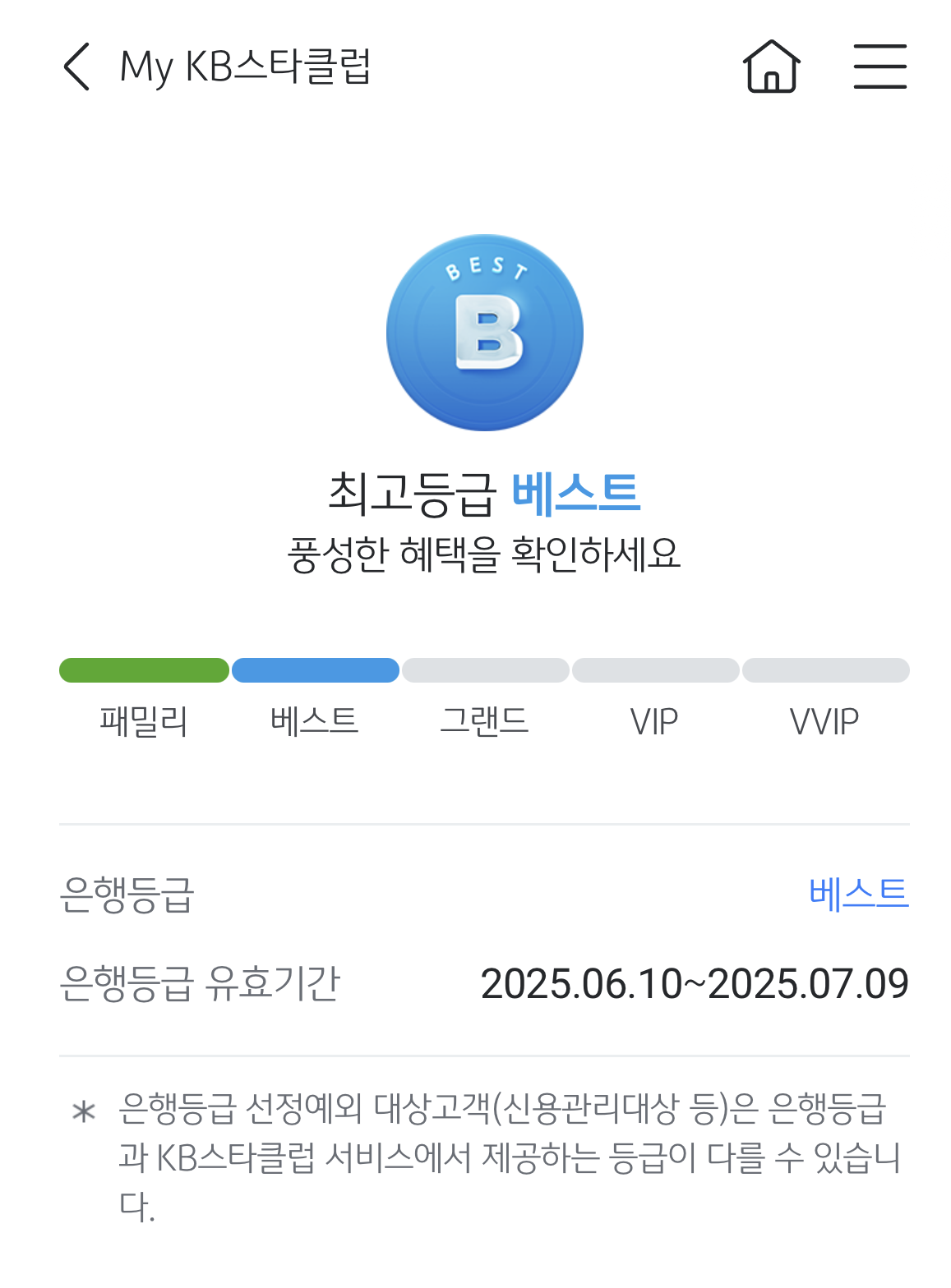 KB스타클럽은 KB금융그룹의 계열사(국민은행, KB증권, KB손해보험 등)의 거래 실적을 바탕으로 고객 등급을 산정하여, 다양한 우대 혜택을 제공하는 프로그램입니다. 고객의 이용 실적에 따라 등급이 정해지는데요. 등급은 ‘VVIP’, ‘VIP’, ‘베스트’, ‘패밀리’로 나뉩니다. 등급에 따라 받을 수 있는 혜택도 다르고, 이벤트 응모 기회도 달라진답니다. 수수료우대, 금리우대, 공모주우대, 포인트적립 등 여러 가지 혜택이 있는데요. 행운룰렛 이벤트도 그중 하나랍니다.