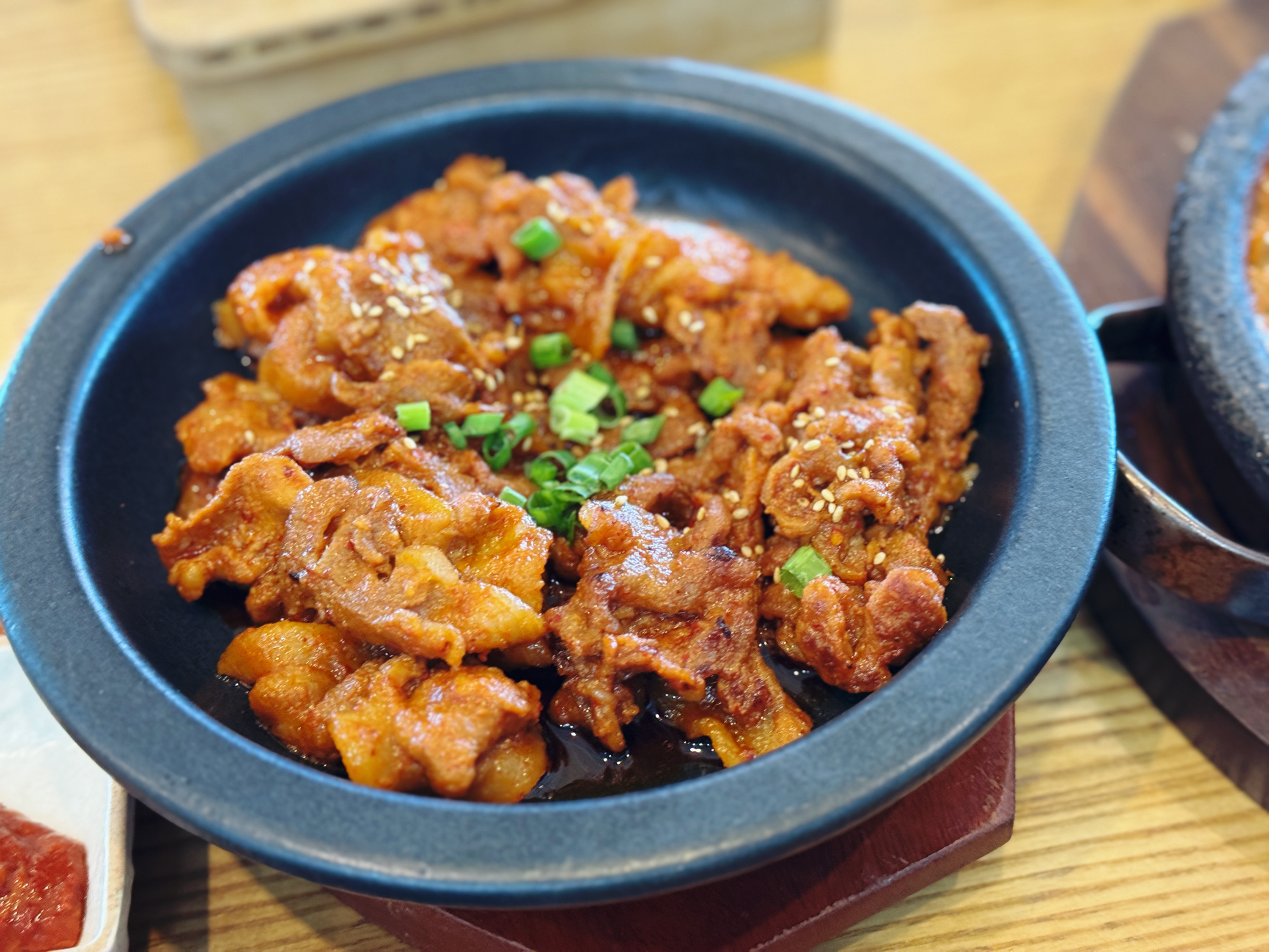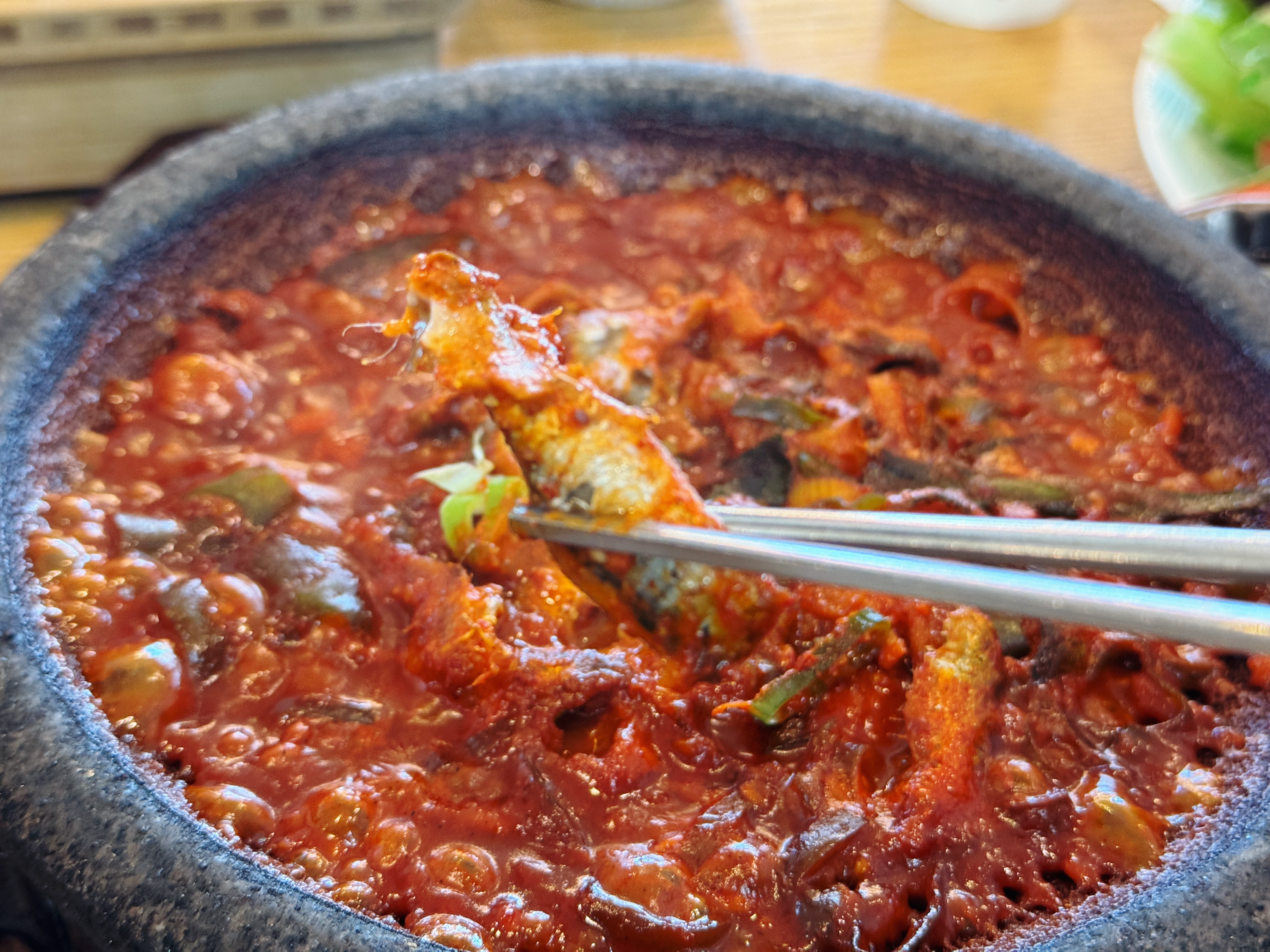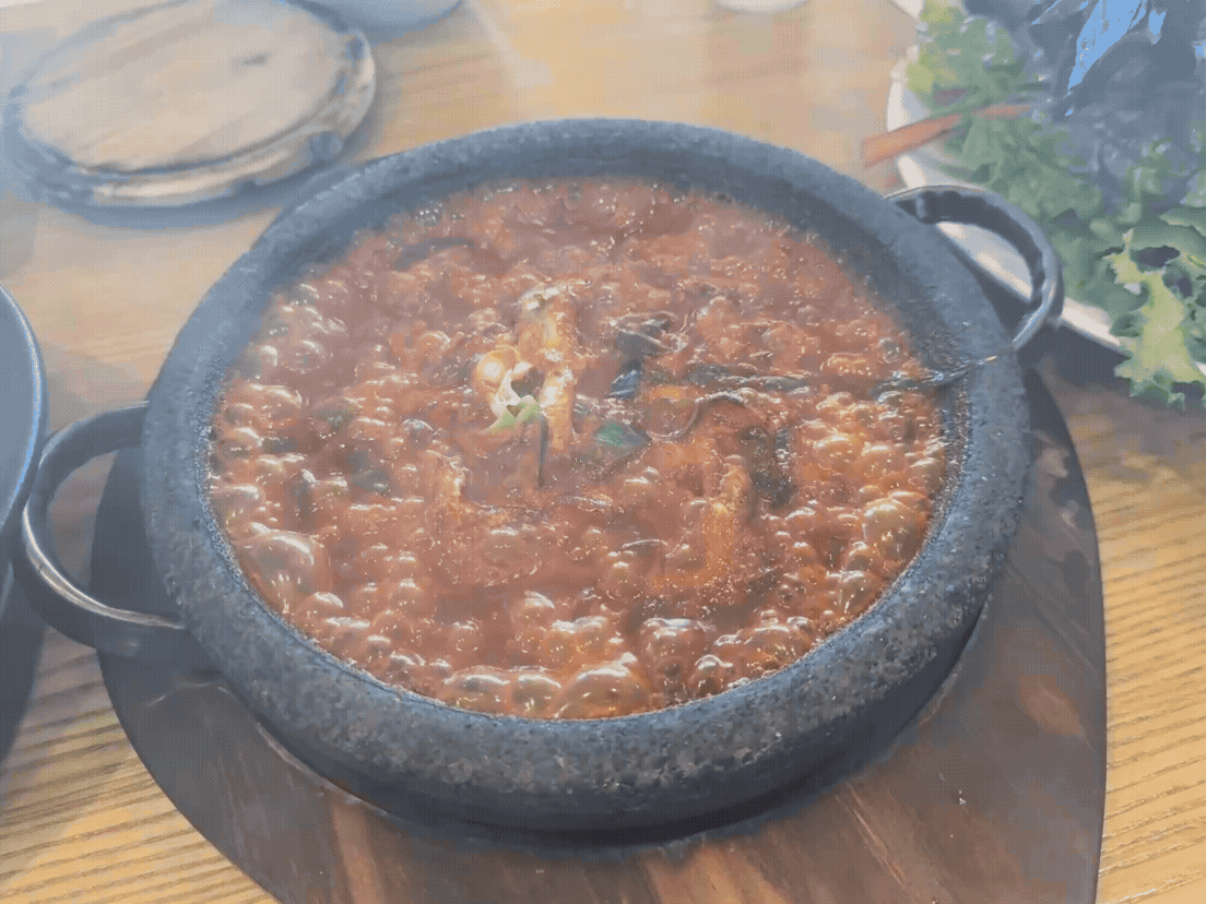 저는 제육볶음보다 기장멸치조림이 더 맛있었는데요. 뜨거운 돌판에 보글보글 끓으면서 등장해서 인상이 깊었답니다. 기장멸치조림에는 커다랗고 살이 통통한 멸치가 들어있는데요. 너무 맵지 않은 양념이 잘 배어 있어 쌈과 함께 먹으니 정말 맛있었어요~ 생각보다 많은 양의 멸치가 들어있어 멸치를 먹느라 제육 리필은 하지 못했답니다. 함께 간 초딩 입맛 짝꿍은 멸치 특유의 비린 냄새를 부담스러워해서 맛만 보고 손도 안 대길래 저 혼자 다 먹었답니다. 냄새에 예민하신 분들은 약간 호불호가 갈릴 수 있을 것 같지만 부모님이나 연세가 있으신 분들은 너무 좋아하실 것 같습니다~