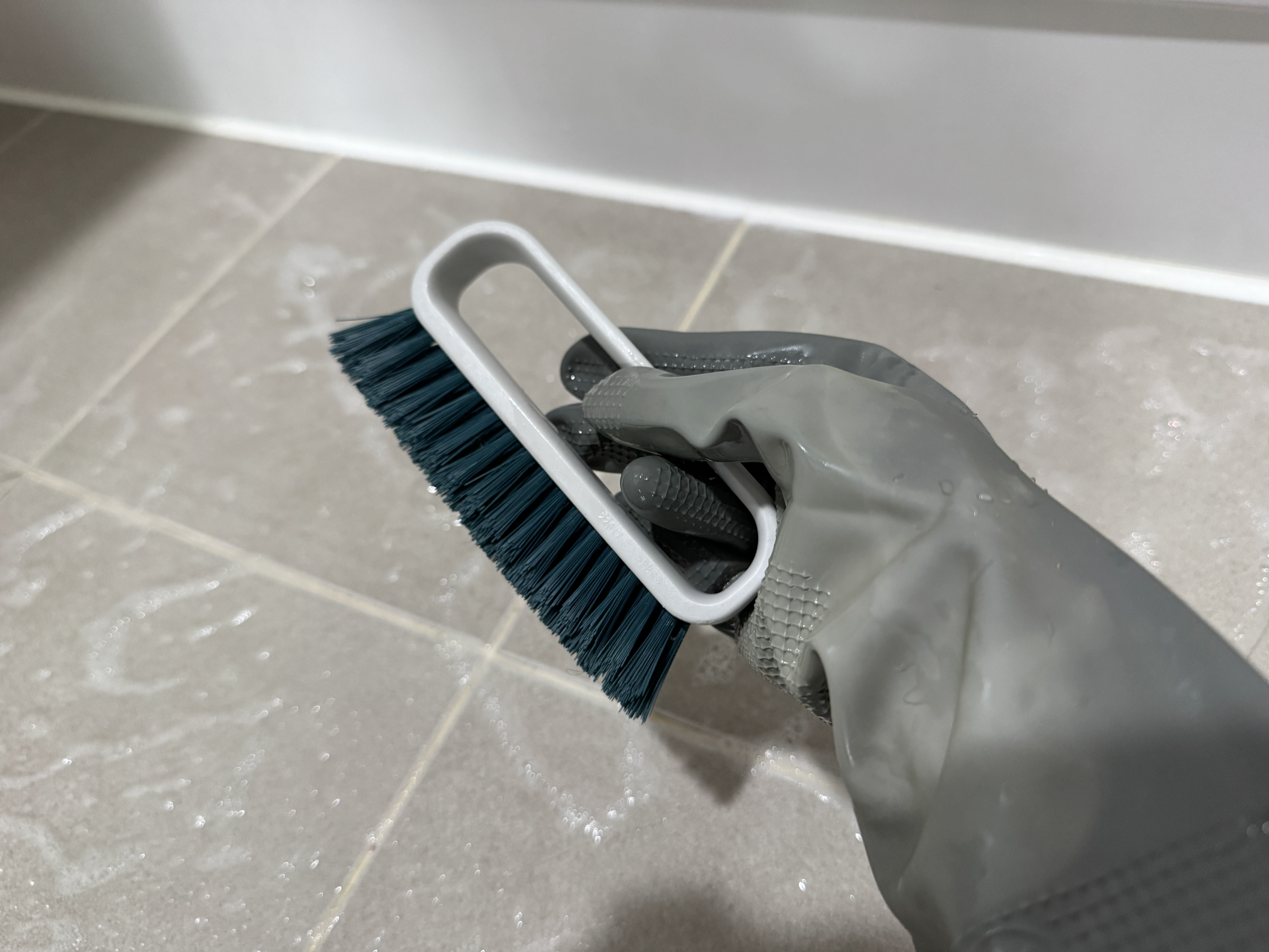 바닥 줄눈은 이케아에서 산 솔로 줄눈 틈새를 쓱쓱 밀어줬는데요. 이케아 청소솔은 솔이 뻣뻣하고 가운데 부분이 v자형으로 되어 있어 몇 번 쓱쓱 밀어주면 크게 힘들지 않게 청소할 수 있답니다.