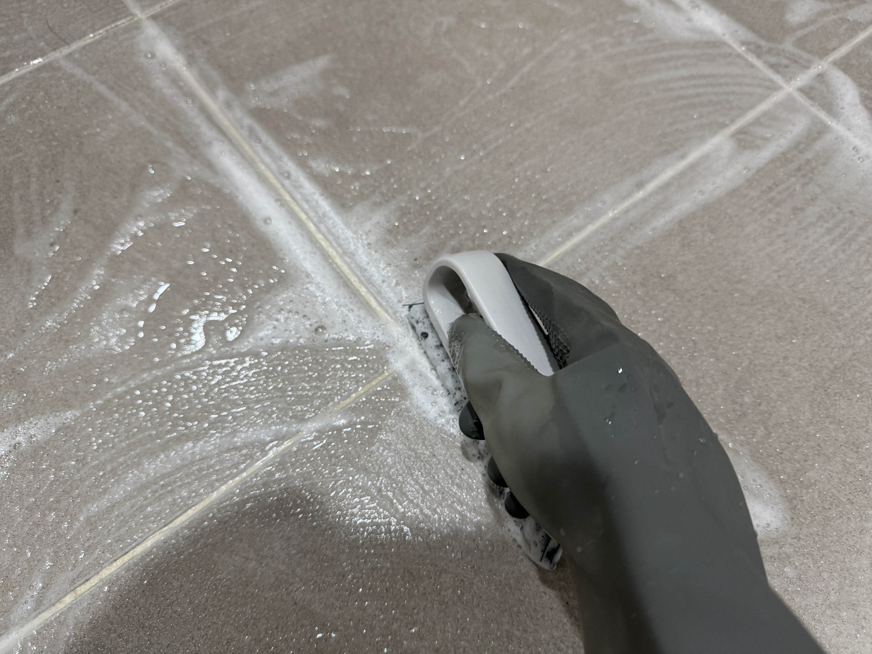 바닥 줄눈은 이케아에서 산 솔로 줄눈 틈새를 쓱쓱 밀어줬는데요. 이케아 청소솔은 솔이 뻣뻣하고 가운데 부분이 v자형으로 되어 있어 몇 번 쓱쓱 밀어주면 크게 힘들지 않게 청소할 수 있답니다.