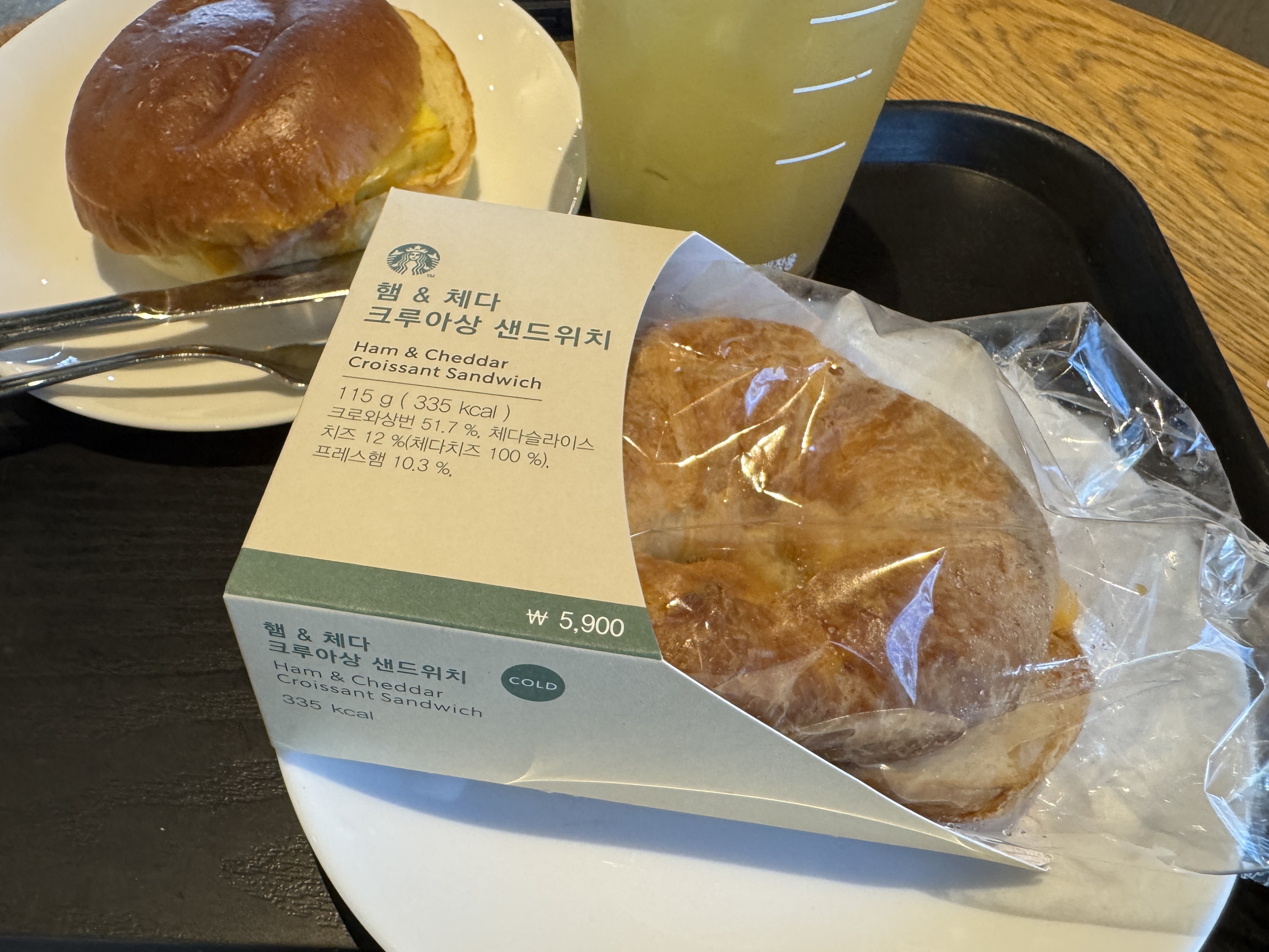 햄 & 체다 크루아상 샌드위치는 루꼴라가 들어있어 너무 좋았는데요. 다음번에 가도 전 햄 체다 크루아상 샌드위치를 주문할 것 같아요~ 유자민트티는 호불호가 있을 수 있지만 티 종류를 좋아하거나 색다른 음료를 찾는 분들이 좋아하실 것 같습니다. 이번 주말, 스벅에서 간단한 브런치 타임 가져보시는 거 어떠세요?