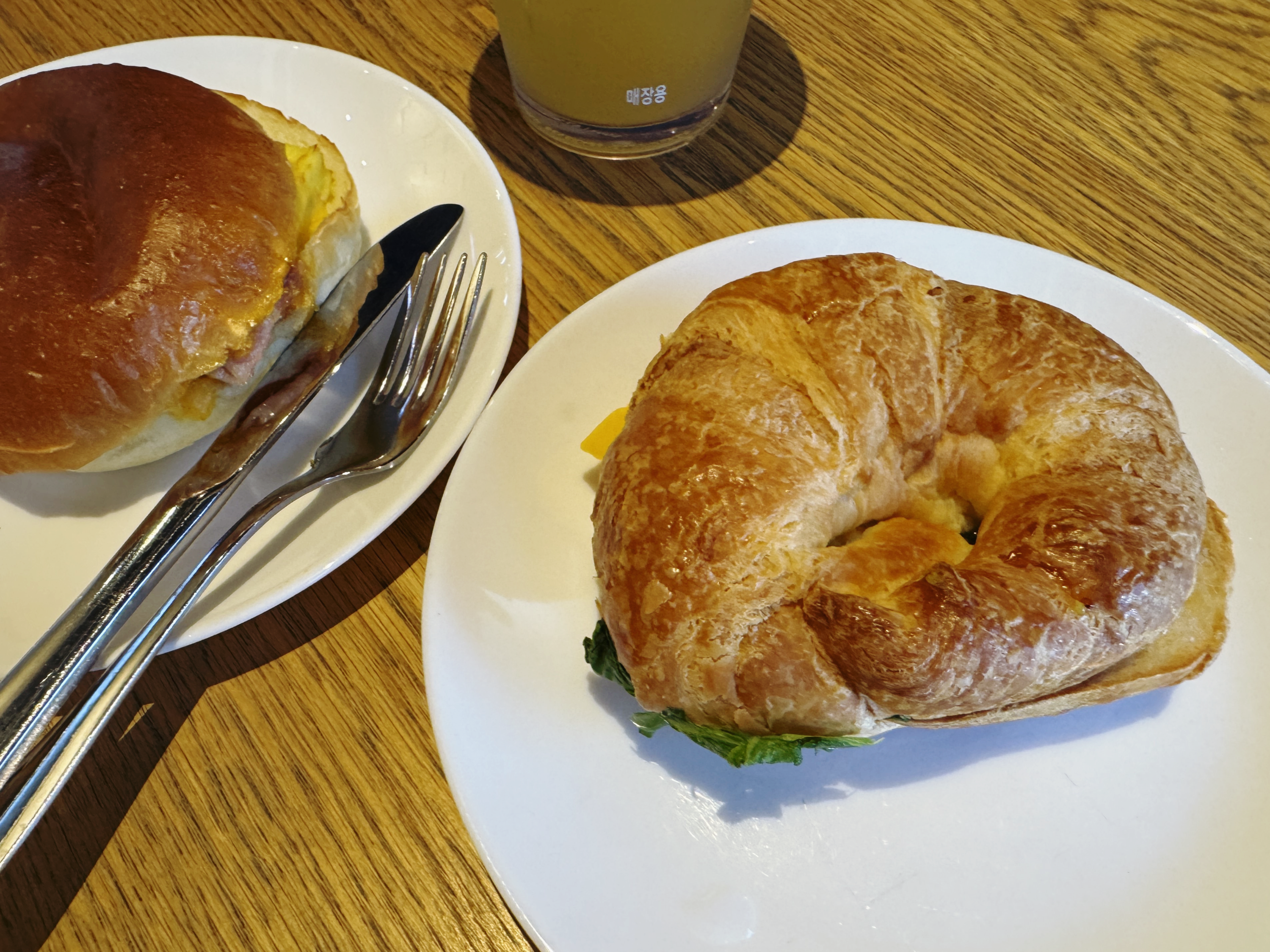 햄 체다 크루아상 샌드위치와 베이컨 체다 오믈렛 샌드위치는 둘 다 맥모닝크기정도 되는 것 같아요~ 약간 작은듯한데 간단하게 먹기에는 충분하답니다.