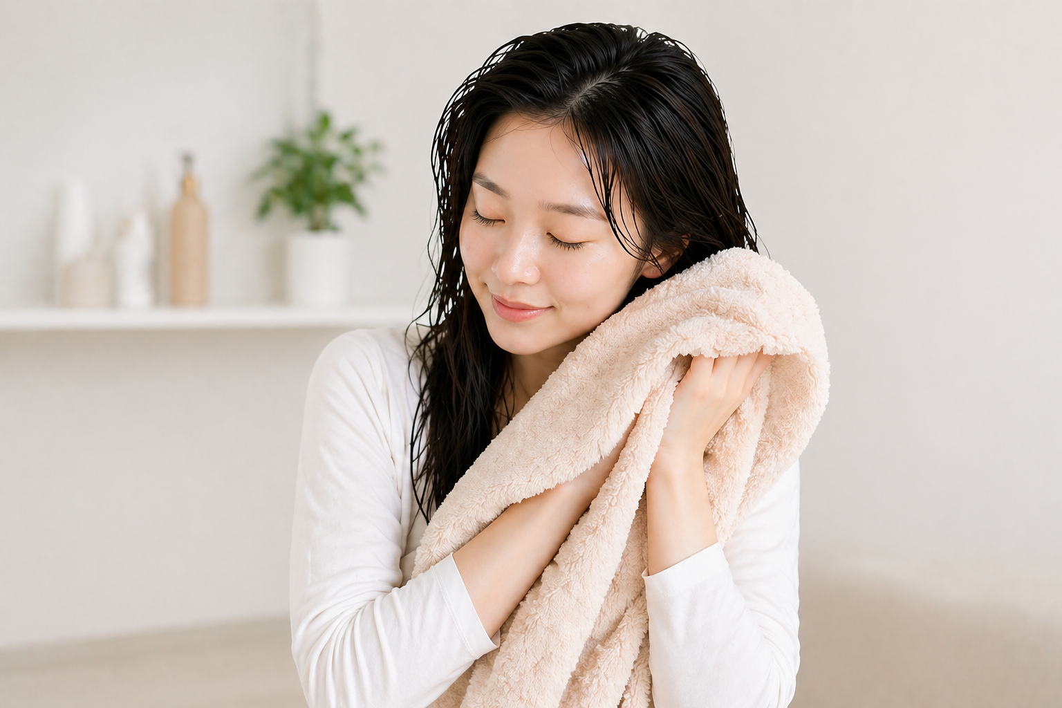 수건으로 머리카락을 비비지 말고 꾹꾹 눌러서 물기를 제거해 주세요~