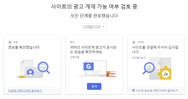 아래와 같이 사이트 광고 게재 가능 여부 검토 중이라고 나오면 애드센스 승인 신청이 된 상태입니다~