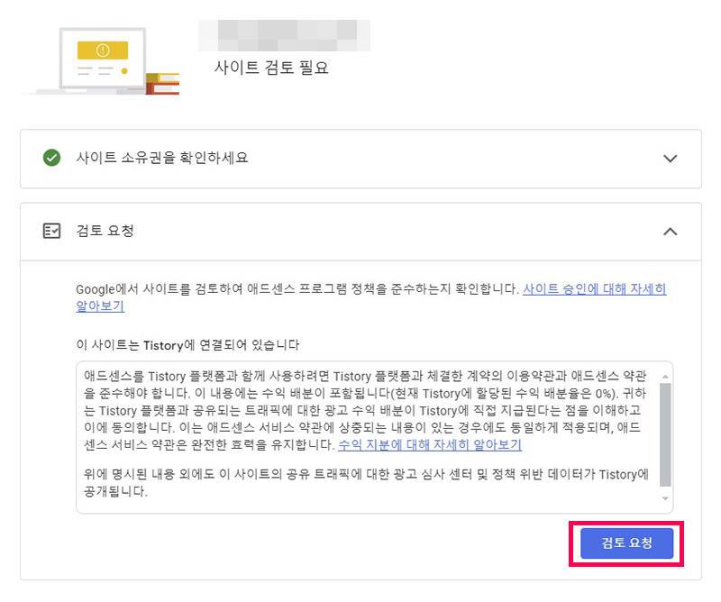 이제 사이트 검토 요청 버튼만 클릭하면 완료입니다!