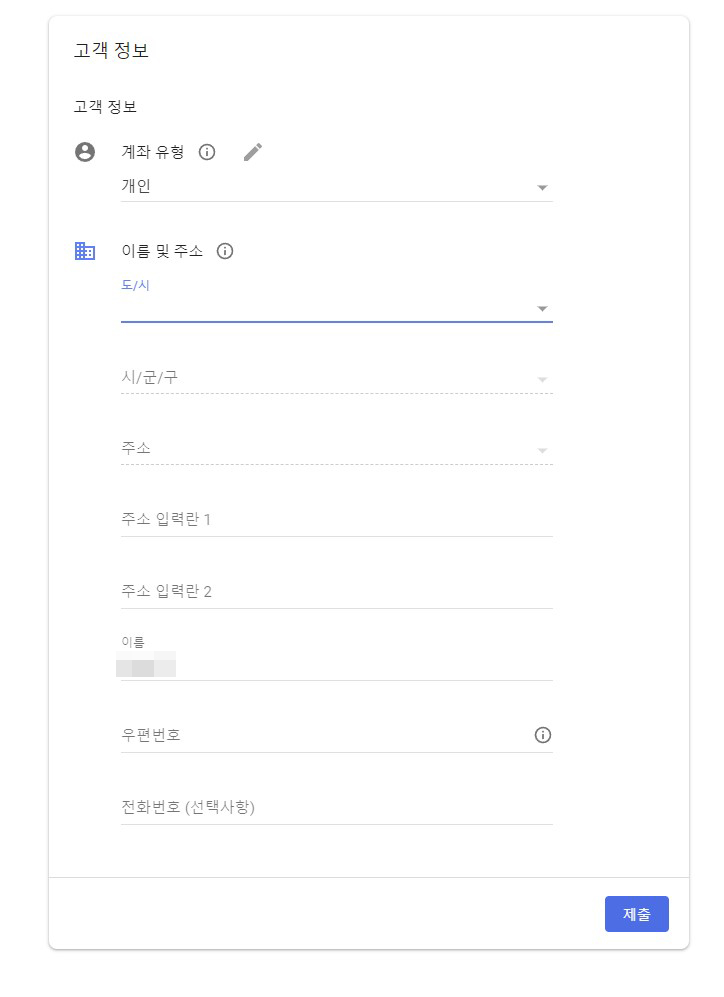 정보 입력 버튼을 누르면 나오는 고객 정보 항목을 입력하고 제출해 주세요.