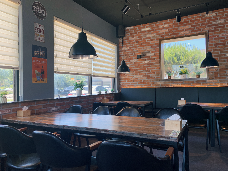 진스스모크하우스로 안으로 들어서니 외국인 손님들이 식사를 하고 있어 순간.. 텍사스로 여행온 듯한 즐거운 상상을 했답니다. 맛있게 식사 중인 외국인 분들이 있어.. 내부 사진은 한쪽만 찍었는데요. 외부처럼 내부도 적벽돌로 마감되어 있고 넓고 쾌적하답니다.