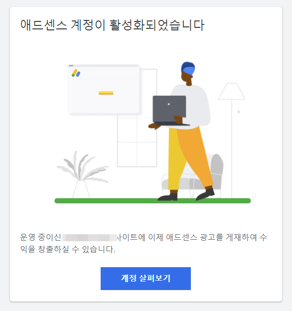 애드센스 사이트에 가보니 이렇게 파란 박스가 떠 있습니다!