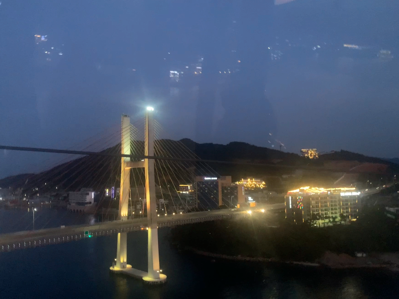 거북선 대교 옆을 지나 돌산공원으로 향하는 케이블카! 저 멀리 돌산대교도 보이는 여수의 야경이 너무 이쁩니다~