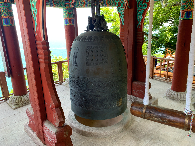 미로 같은 길을 따라가다 보면 작지만 화려한 관음전, 인자한 얼굴의 해수관세음보살상과 원효대사가 앉아서 바다를 바라보며 도를 닦았다는 커다란 좌선대가 나옵니다. 바위가 넓적하고 평평한 것이 킹사이즈 침대보다 더 크고 안락해 보이네요 >. <