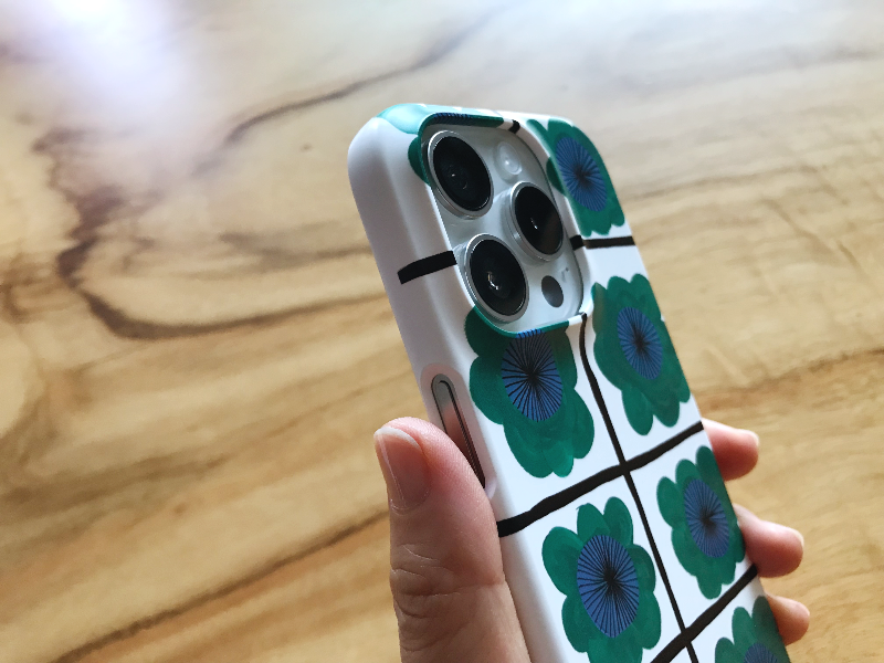 케이스를 핸드폰에 씌워봤는데요~ 초록색 꽃들이 시원하니 넘 이쁩니다~~ 뒤쪽 렌즈 부분도 케이스가 충분하게 위쪽으로 올라와 충격방지가 잘 될 것 같습니다. 풀케이스가 아니라서 하단 부분은 뚫려있는 디자인인데요. 이 부분이 살짝 아쉬울 뿐 전체적으로 마음에 듭니다~