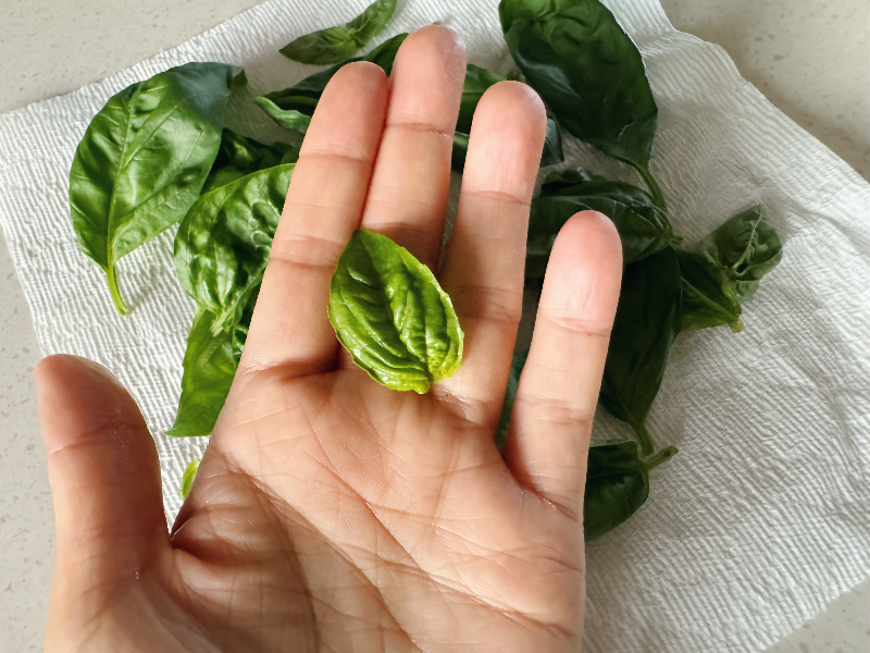 바질 잎 크기가 엄청 큰 것도 있고 작은 것도 있네요. 바질 잎은 씻어서 물기 제거하는 거 잊지 마세요~