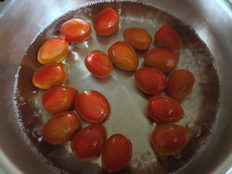 너무 단 것을 싫어하시는 분들은 설탕양을 줄이고 대신 스테이비아 방울토마토로 만들어도 좋을 것 같습니다.