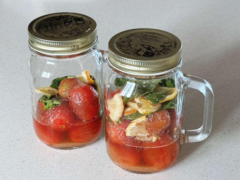 집에 있던 토마토가 스테비아 방울토마토라 그냥 만들었는데 건져 먹을 때 더 맛있다는요~~