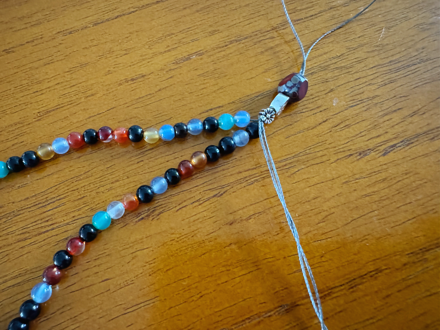 2. 실을 각각 양 옆의 비즈에 통과시켜 주세요.
