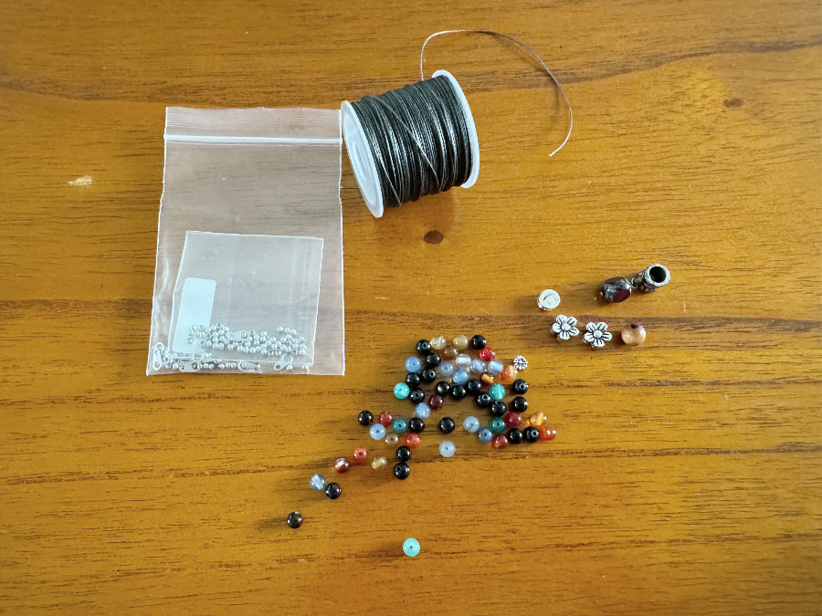 집에 있는 재료를 꺼내보았습니다. 비즈보다는 약간 큰 지름이 4mm 정도 되는 원석들이 있길래 한 알 한 알 다 꺼냈고요~