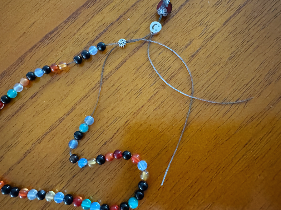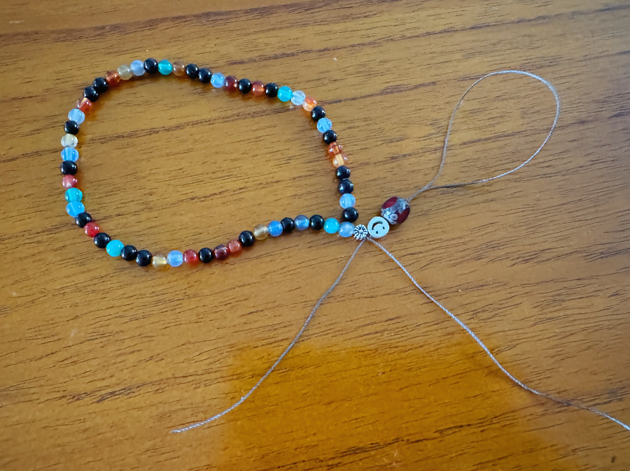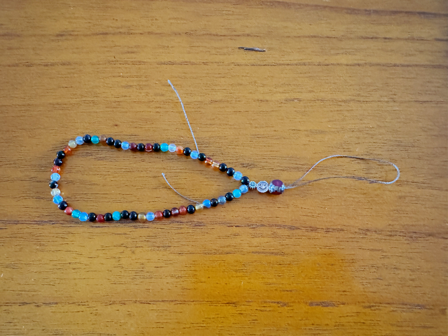 실을 각각 양쪽 옆 비즈에 적당히 통과시킨 후 가위로 깔끔하게 잘라 정리해주세요.