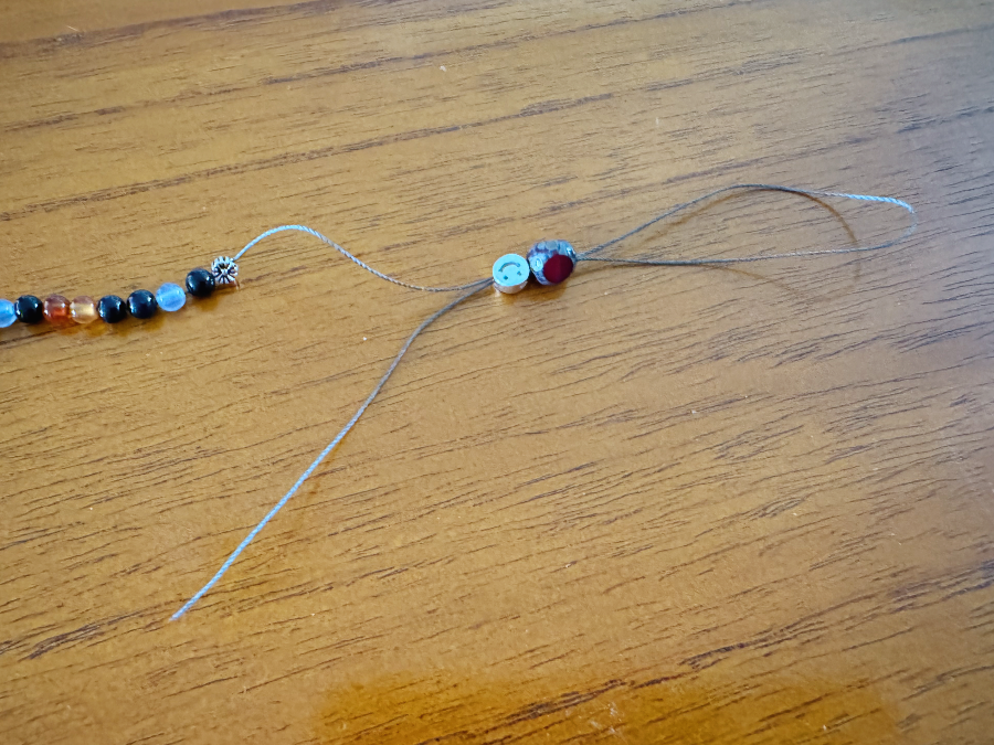 2. 실을 각각 양 옆의 비즈에 통과시켜 주세요.