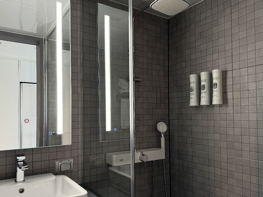 제일 걱정했었던 화장실! 혹시나 가격이 저렴해 화장실 상태가 불량하거나 냄새가 나면 어쩌나 걱정했었는데.. 걱정이 무색하게 아주 깔끔하고 청소상태도 좋았답니다~ 샴푸, 트리트먼트, 바디워시가 다회용이지만 제공되고 일회용 칫솔과 치약, 비누도 있습니다.