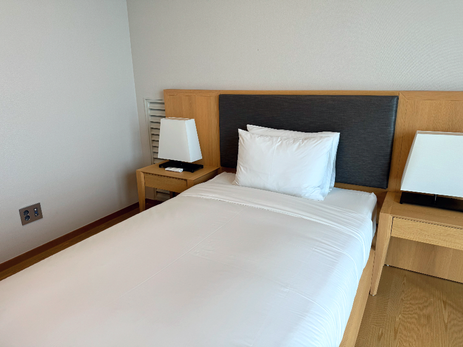 프레임이 이쁜 킹베드가 있는 안방입니다. 깔끔하게 각 잡혀있는 베개와 침구는 폭신하고 매트리스도 딱딱하지 않아 너무 좋았답니다.