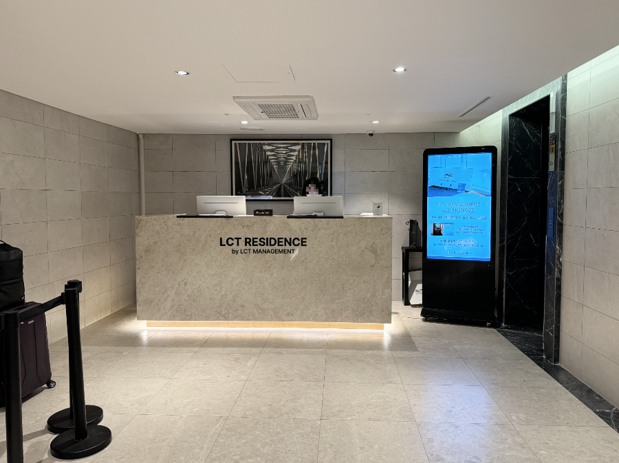 이번 여름은 저 포함 4명의 아즘씨(?)들이 해운대에서 집합하기로 해서 4명 숙박이 가능한 엘시티 레지던스를 숙소로 정했습니다. 아고다를 통한 할인 예약으로 비수기 주중 1박 요금은 부가세 포함 20만 원 후반 대였습니다. 엘시티 레지던스는 운영업체가 3곳이라고 하는데요. 저희가 예약한 곳은 엘시티 매니지먼트였습니다. 숙박 3일 전 사전 체크인 안내가 문자로 와서 미리 투숙객 정보와 주차등록이 가능하기 때문에 숙박 당일에는 순조롭게 주차도 할 수 있었고 빠른 체크인이 가능했습니다. 사전 체크인 등록 시 얼리체크인 요청란에 체크했는데 숙박 당일 2시에 체크인이 가능했습니다. 체크인 시간이 오후 4시라 너무 늦지 않나 생각했는데 생각보다 빠른 체크인에 기분이 좋았답니다 :-) 체크인을 지하 4층 엘리베이터 홀 데스크에서 했는데 체크인을 하고 숙소로 올라가는 동선이 조금 복잡하고 체크인 데스크가 조금 작습니다. 사람들이 몰릴 땐 체크인이 좀 늦어질 수 있으니 미리 사전 체크인을 꼭 하고 가시는 걸 추천드립니다~