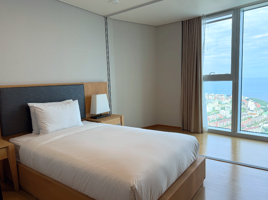 아고다를 통해 엘시티 레지던스 오션 주니어 스위트 50G, 51H를 예약했는데.. 저희가 배정받은 곳은 55F 오션 스위트였습니다~ 사실.. 숙박 당시에도 몰랐는데 포스팅하려고 찾아보니 우리 숙소가 오션 스위트였어요 :-) 오션 스위트는 오션 주니어 스위트와 뷰는 미포항뷰로 같고 큰 차이는 없지만 오션 주니어 스위트보다 살짝 더 넓은 것 같습니다. 숙박 당시에도 오아~ 오아~ 하면서 좋다~ 좋다 했는데 룸이 업그레이드됐다니 지금 다시 또 기부니가 좋네요~~~ 아마도 저희 숙박인원이 많아서 쬐금 더 넓은 곳으로 배정해 주신 듯해요~